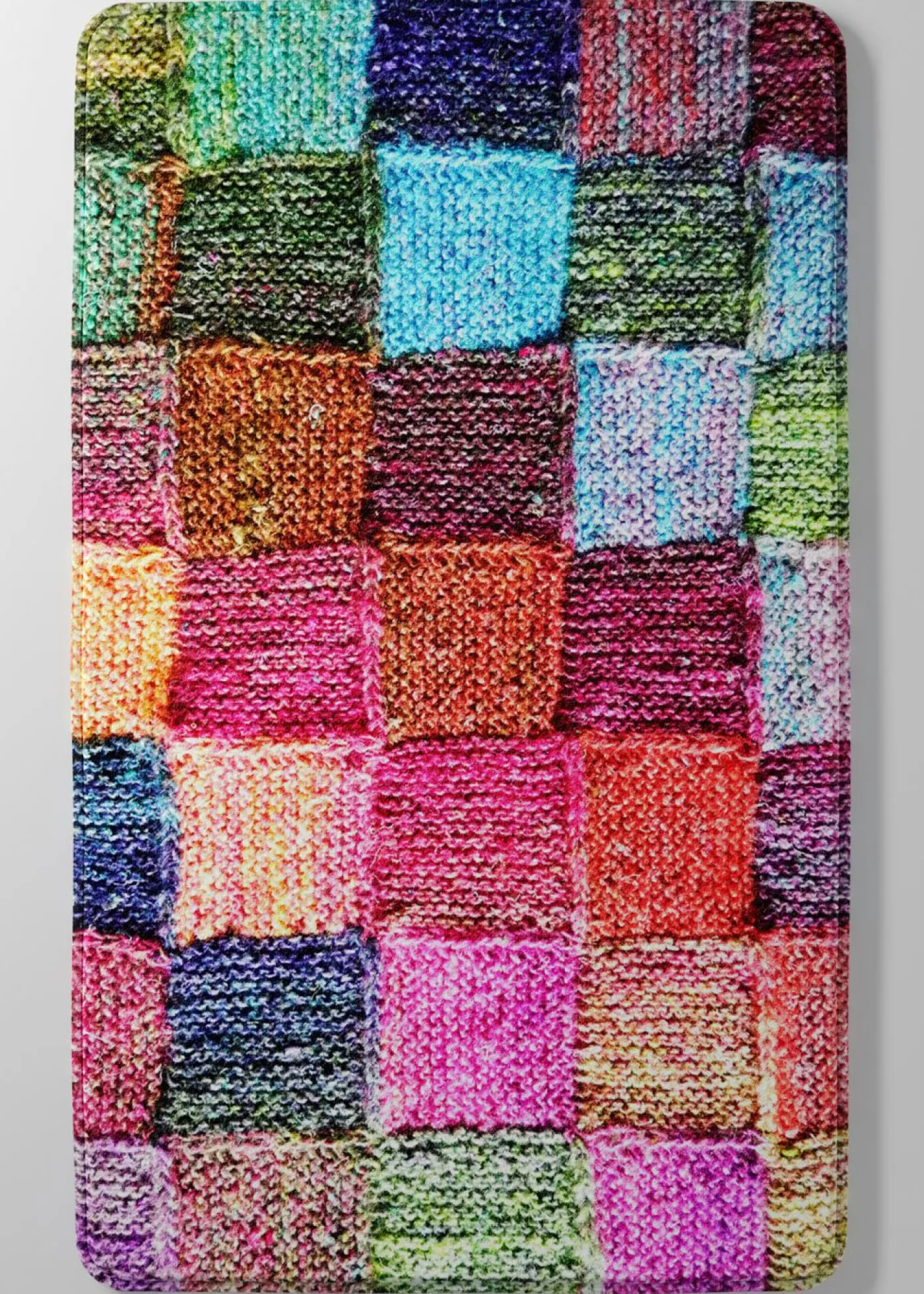Estampado digital con efecto de punto, espuma viscoelástica. Juego de baño con estampado patchwork multicolor, tacto supersuave, secado rápido, con espuma viscoelástica. Extremadamente absorbente.