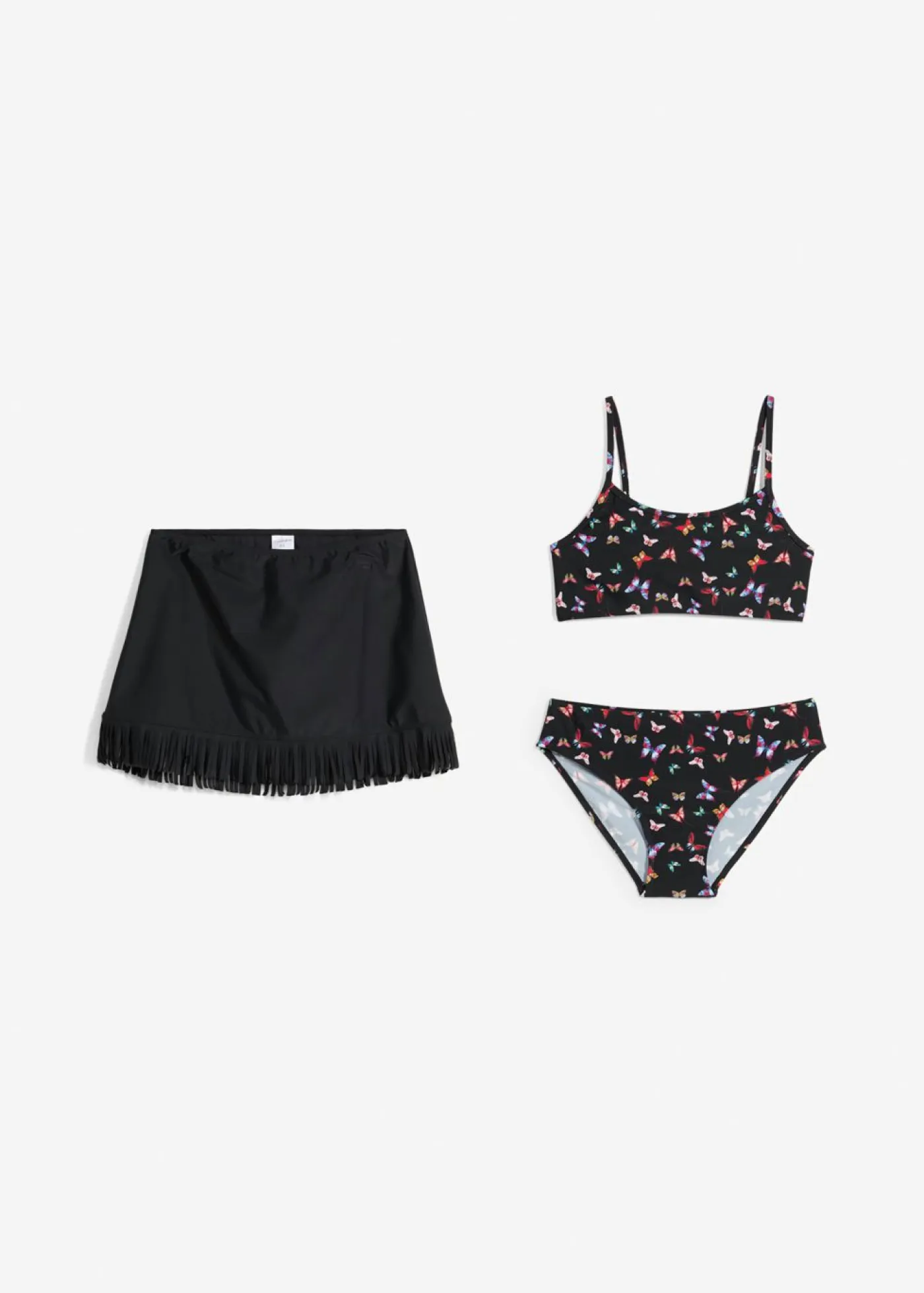 Moderno bikini con falda y estampado de mariposas (conjunto de 3 piezas).