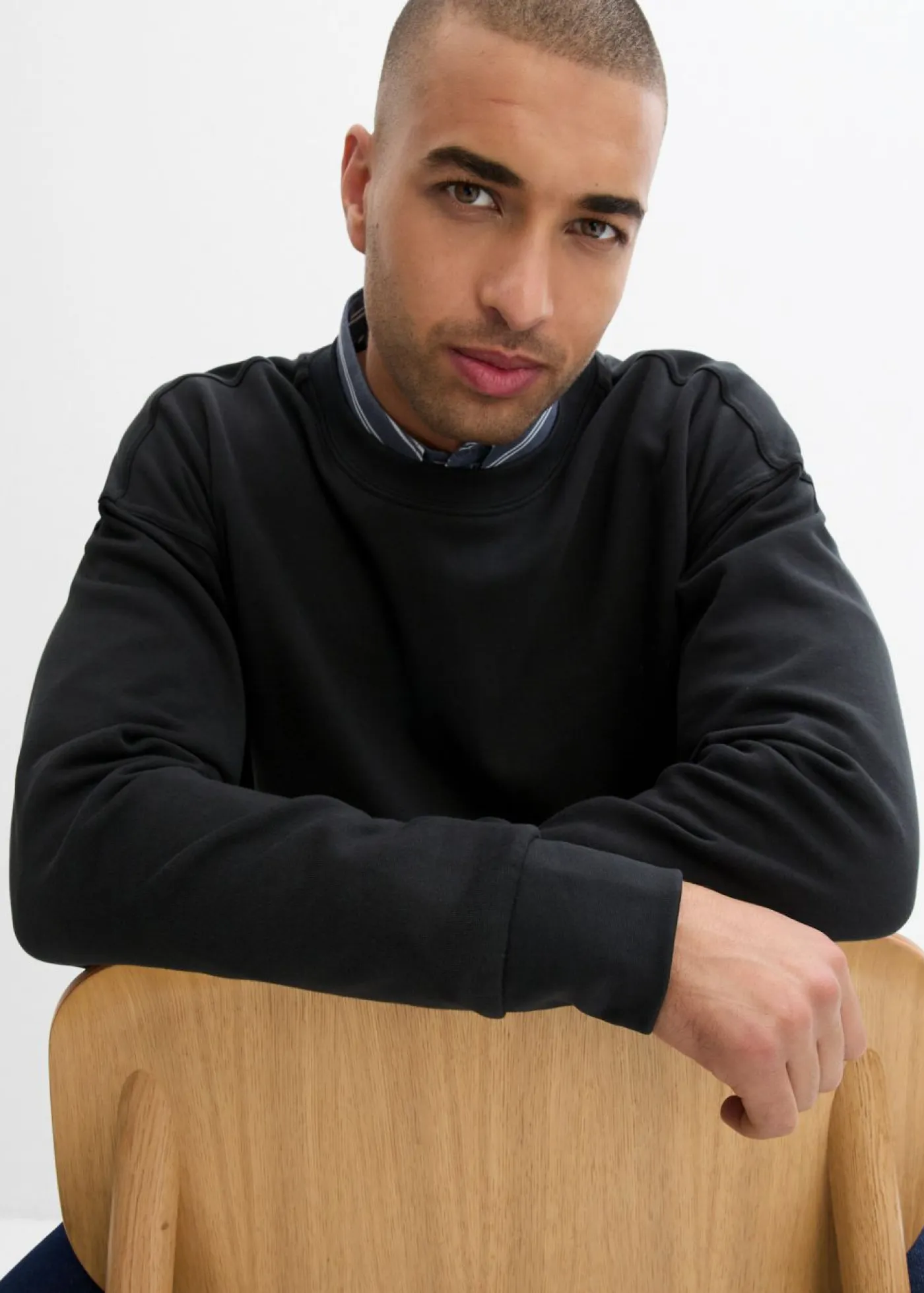 Sudadera básica moderna de algodón orgánico puro con hombros caídos e interior suave.