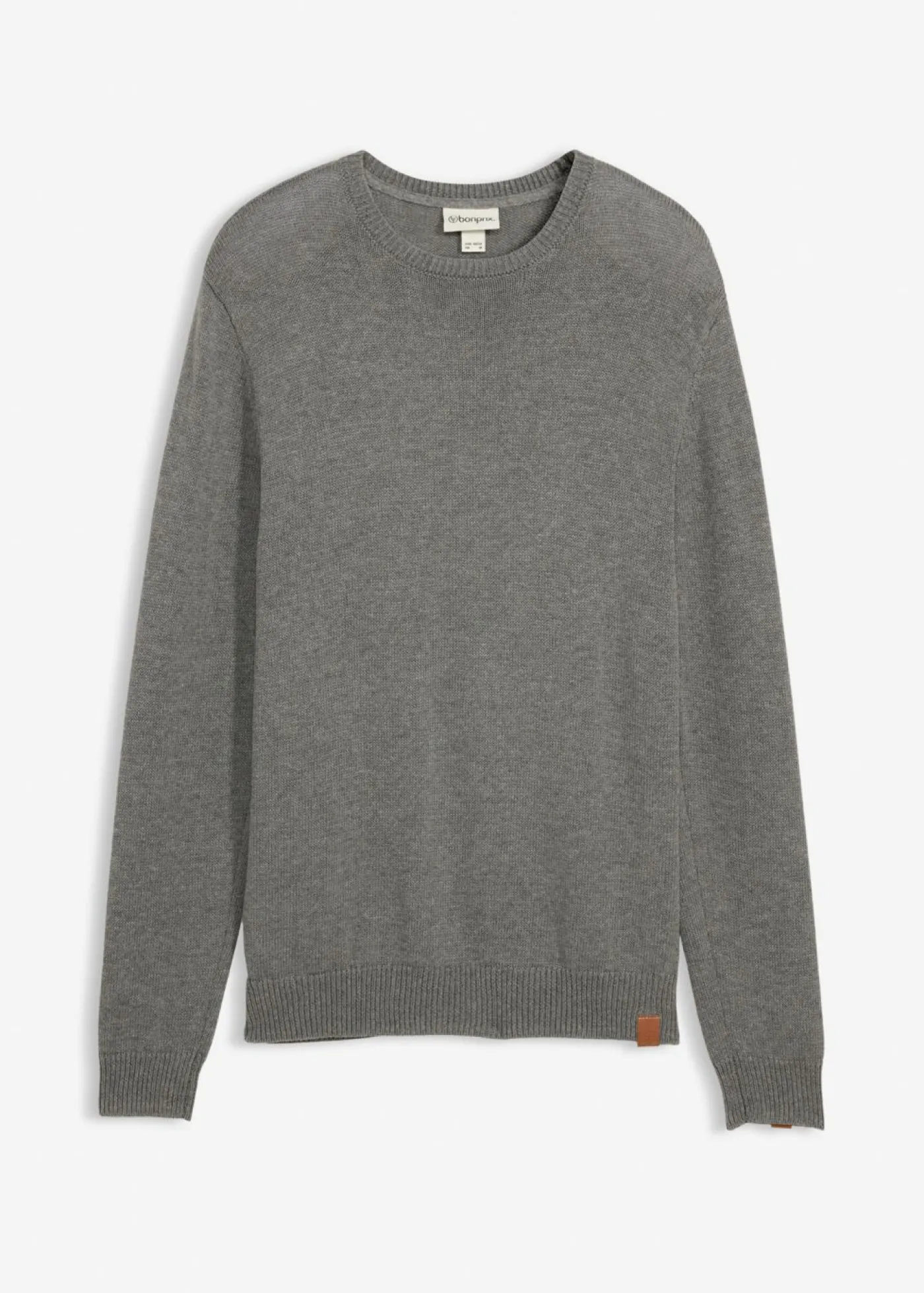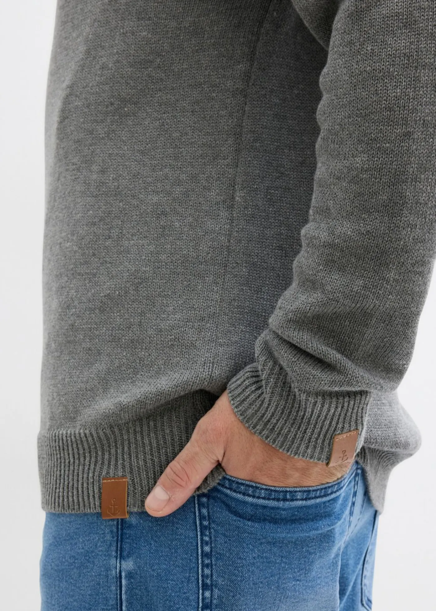 Jersey moderno con cuello redondo y detalles de piel sintética. Se puede lavar a máquina.