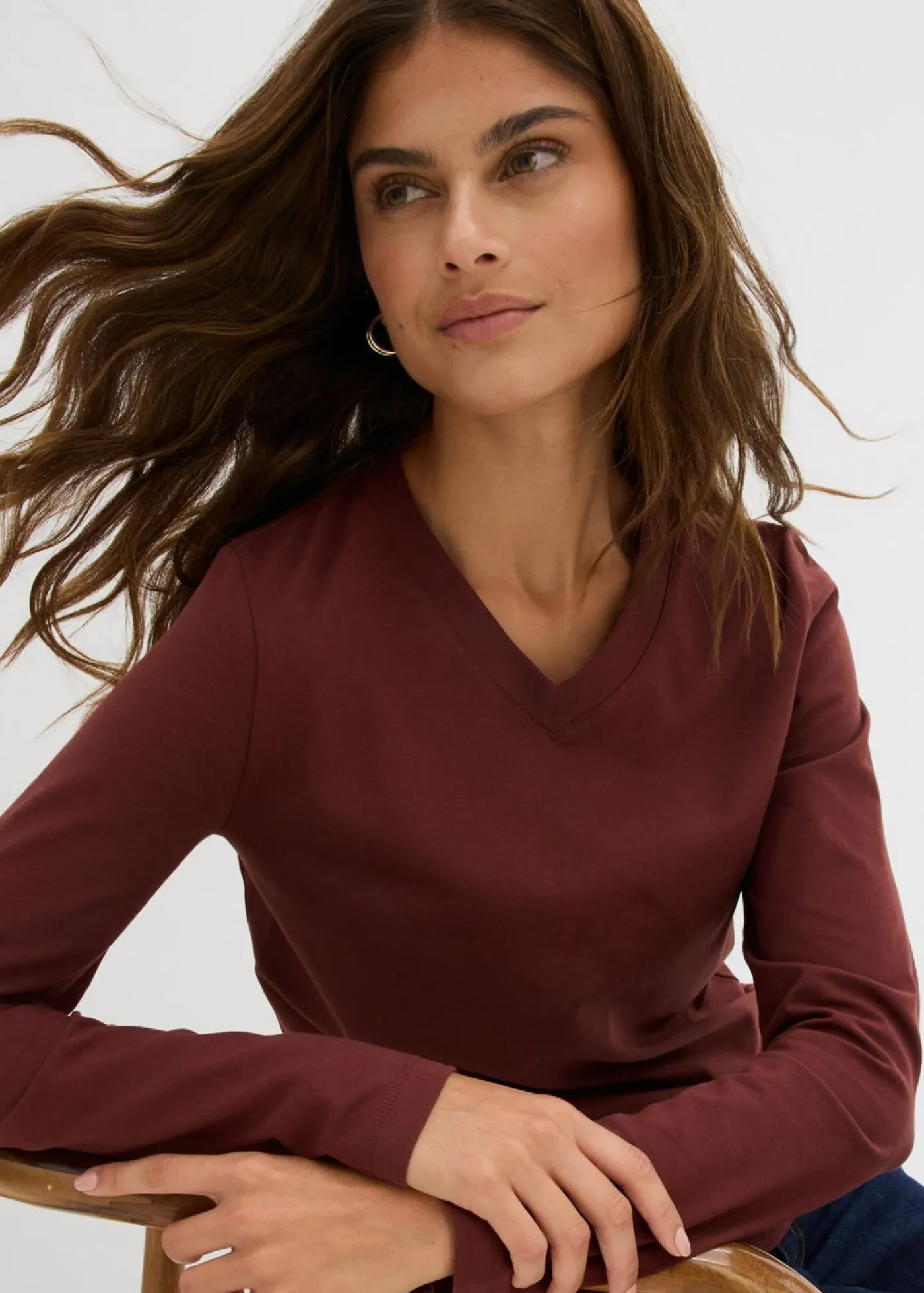 Cómoda camiseta de manga larga con escote en V.