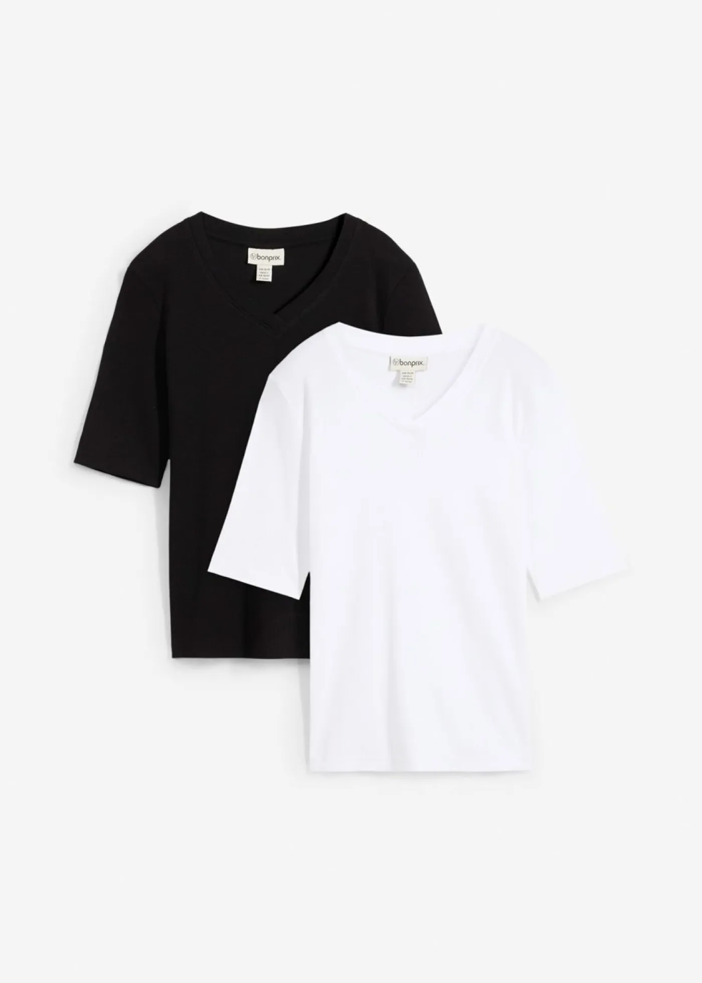 Camiseta de canalé versátil con escote en V. Largo de aprox. 62 cm en talla 40/42. Se puede lavar a máquina.