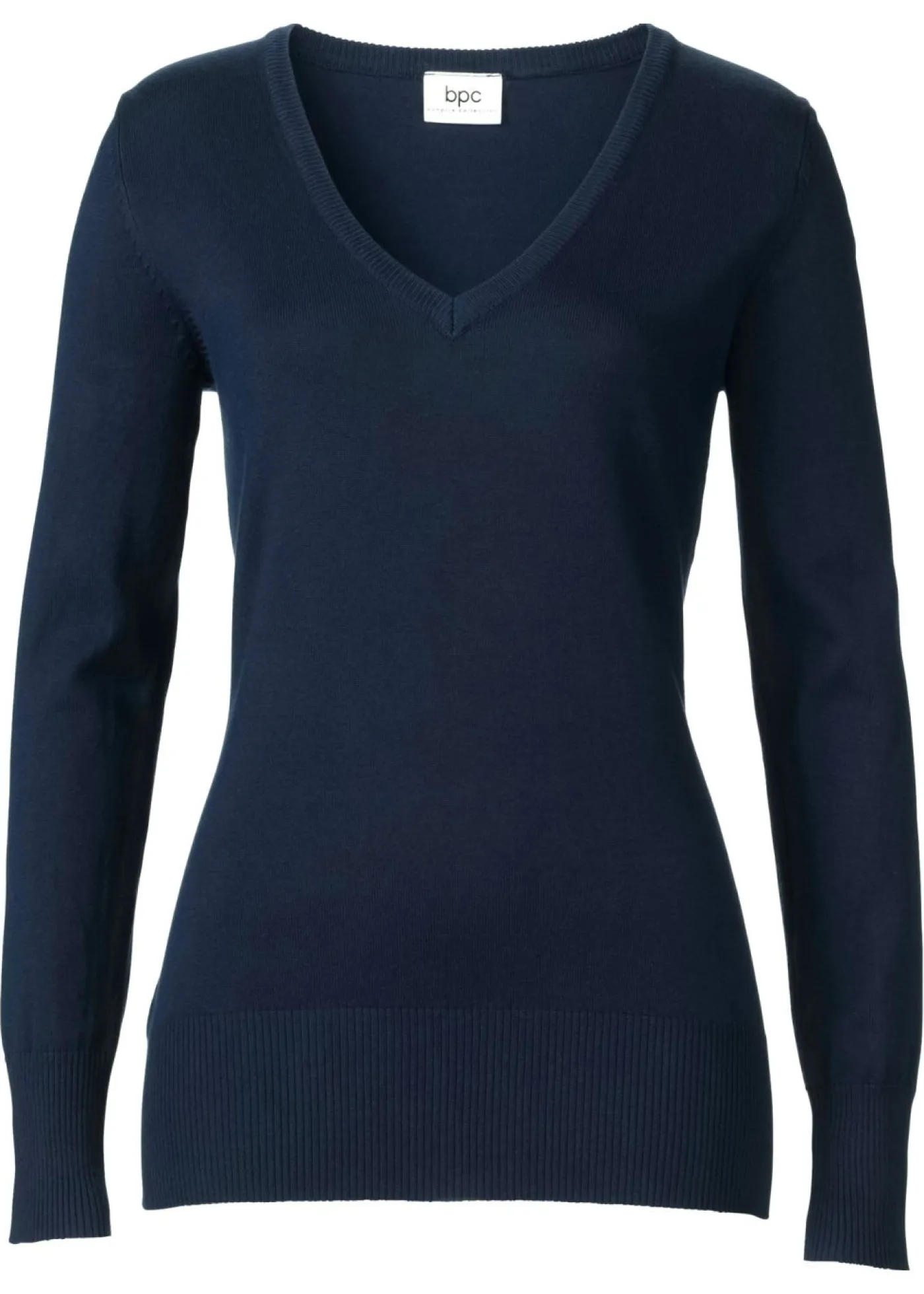 Cómodo jersey básico con algodón. Jersey de b.p.c Casual de punto fino con escote en V y puños de canalé. Largo de aprox. 64 cm (talla 36/38) a aprox. 72 cm (talla 52/54). Se puede lavar a máquina.