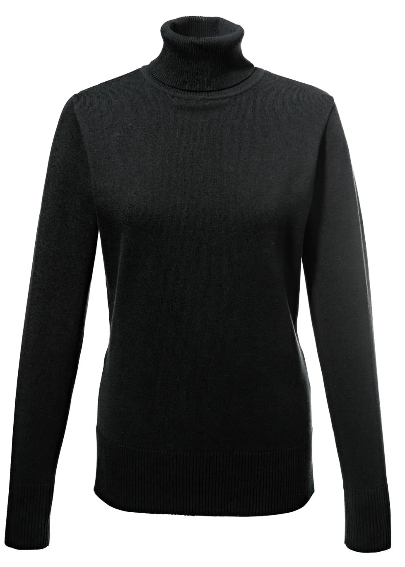 Jersey de cuello alto con corte informal. Con punto fino en el cuello vuelto. Largo de aprox. 64 cm (talla 36/38) a aprox. 72 cm (talla 52/54). Se puede lavar a máquina.