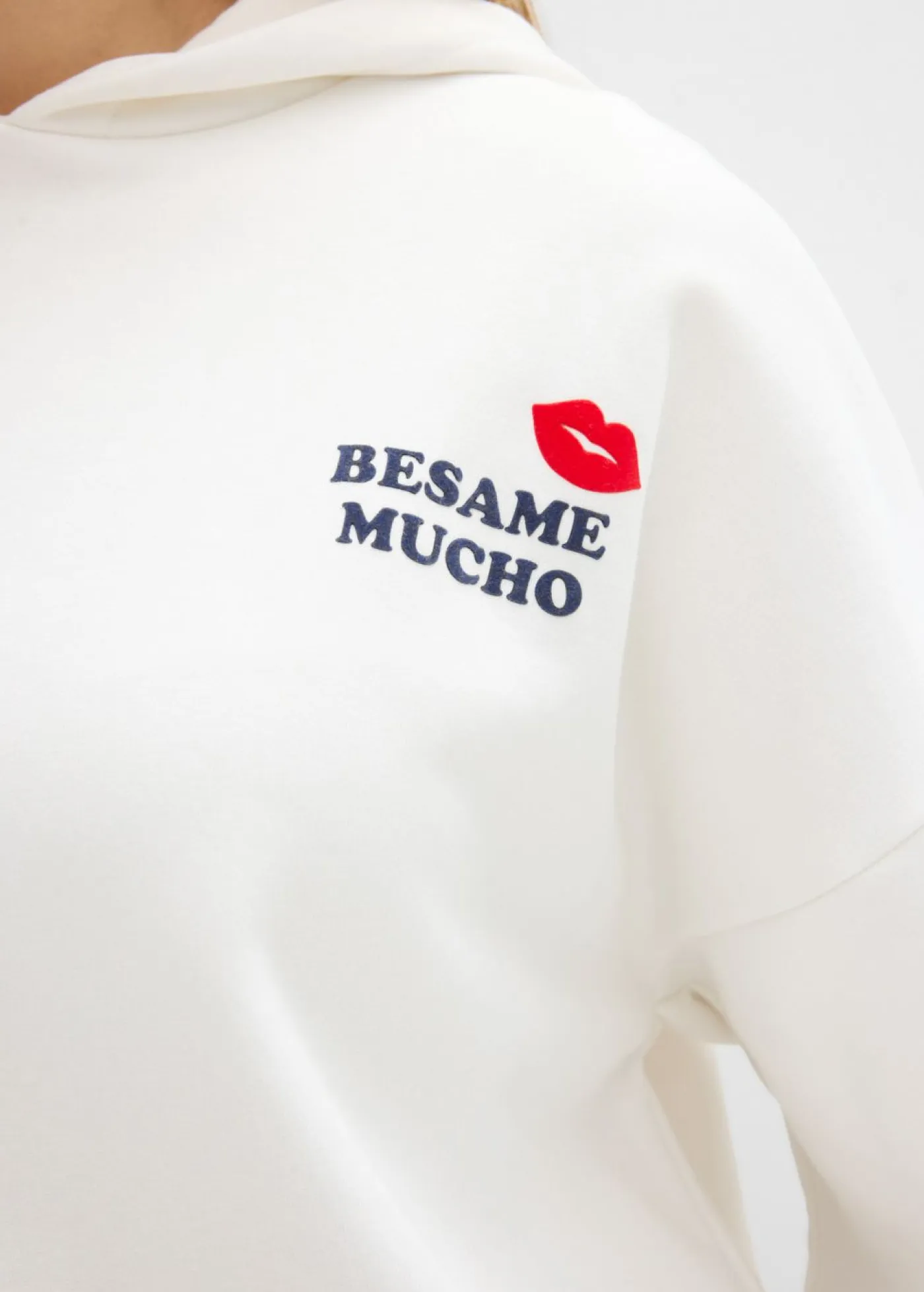 Sudadera moderna con capucha y hombros caídos. Largo de aprox. 66 cm en talla 40/42. Se puede lavar a máquina.