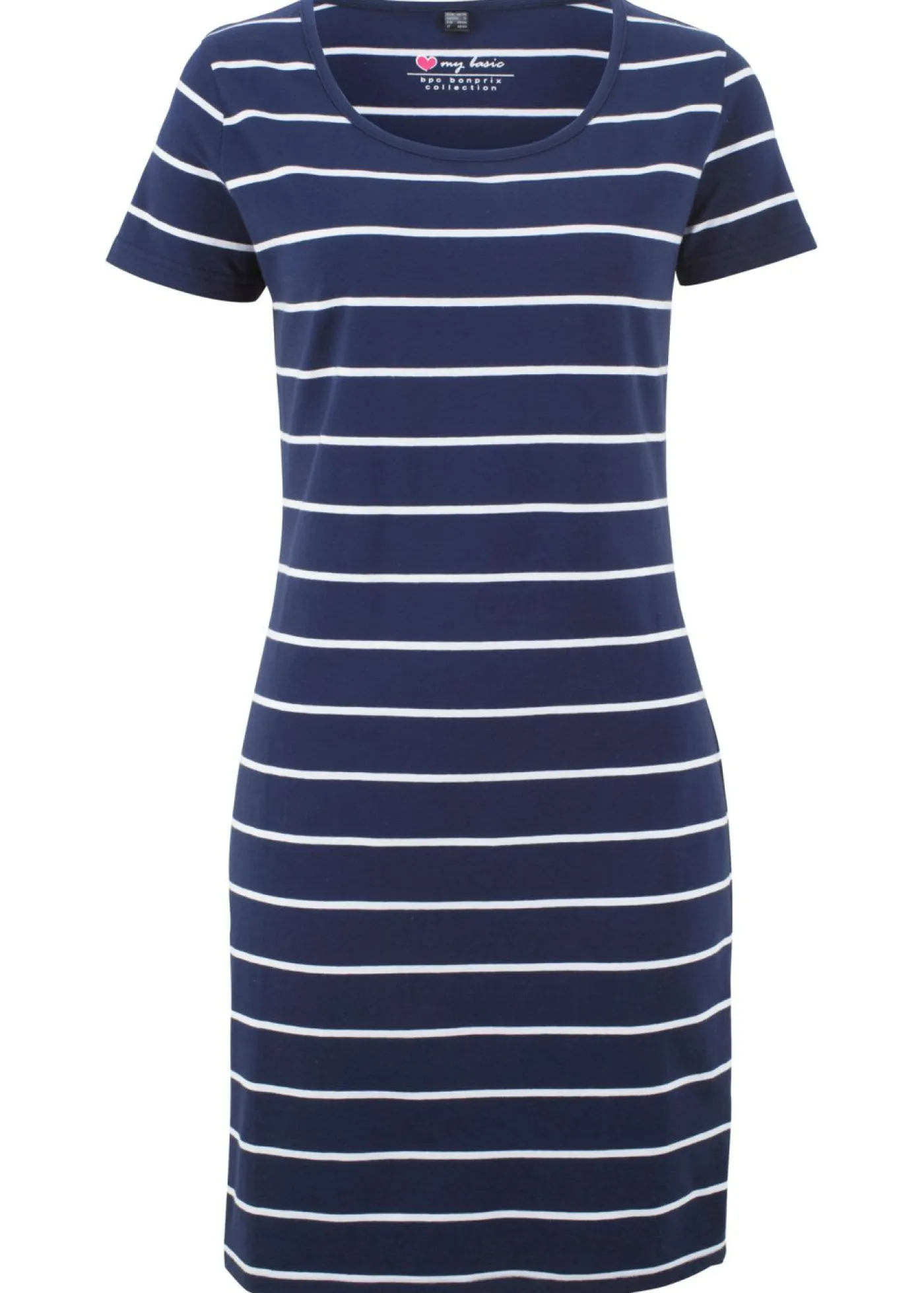Vestido elástico de algodón. Largo de aprox. 92 cm en talla 40/42. Se puede lavar a máquina.