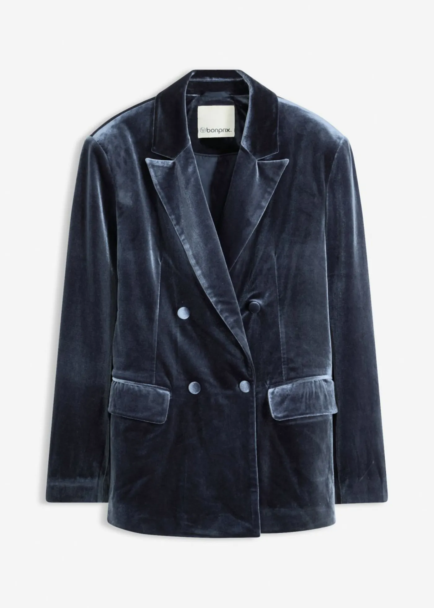 Moderna americana de doble botonadura en suave terciopelo.