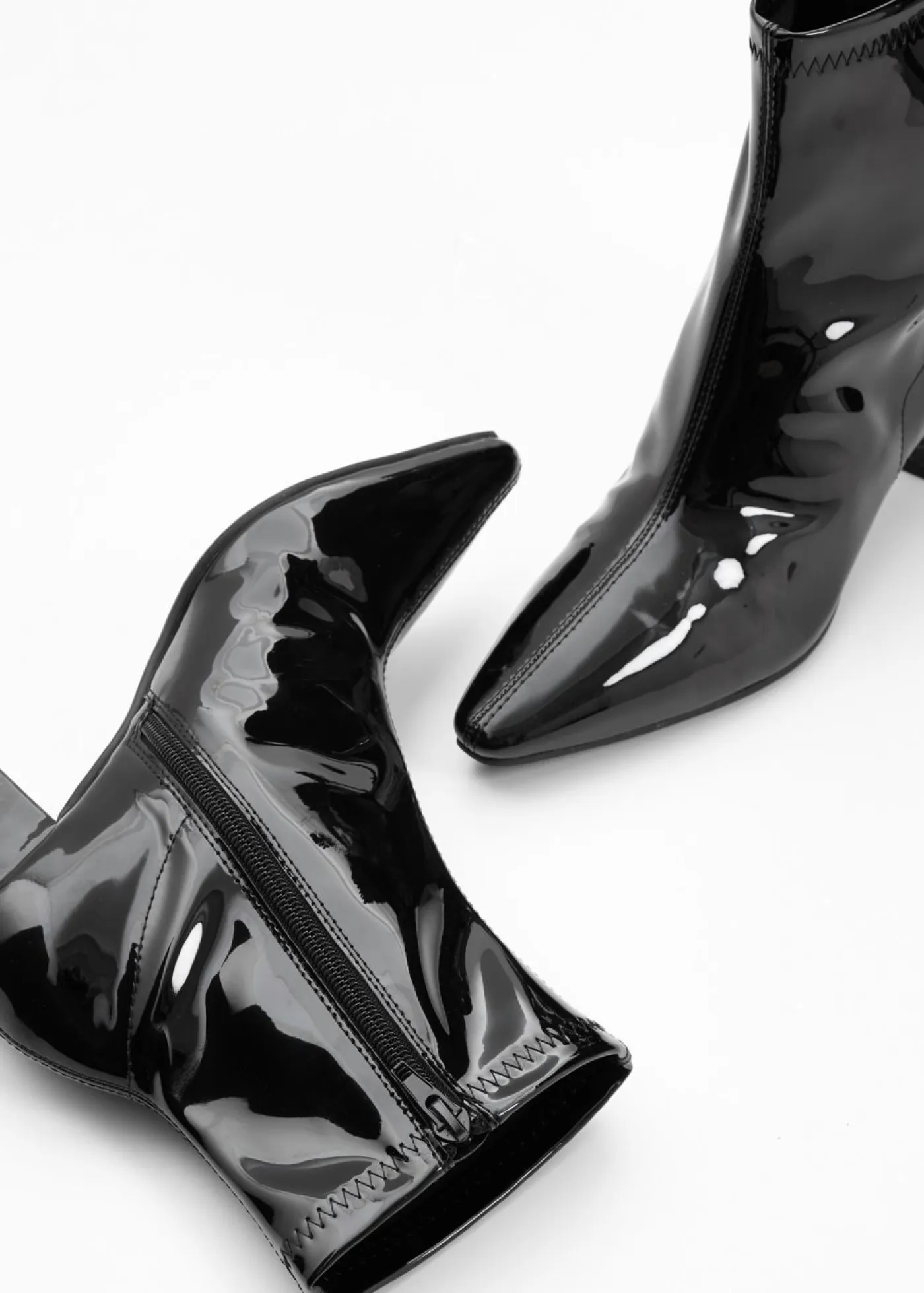 Elegantes botines de charol con caña flexible.