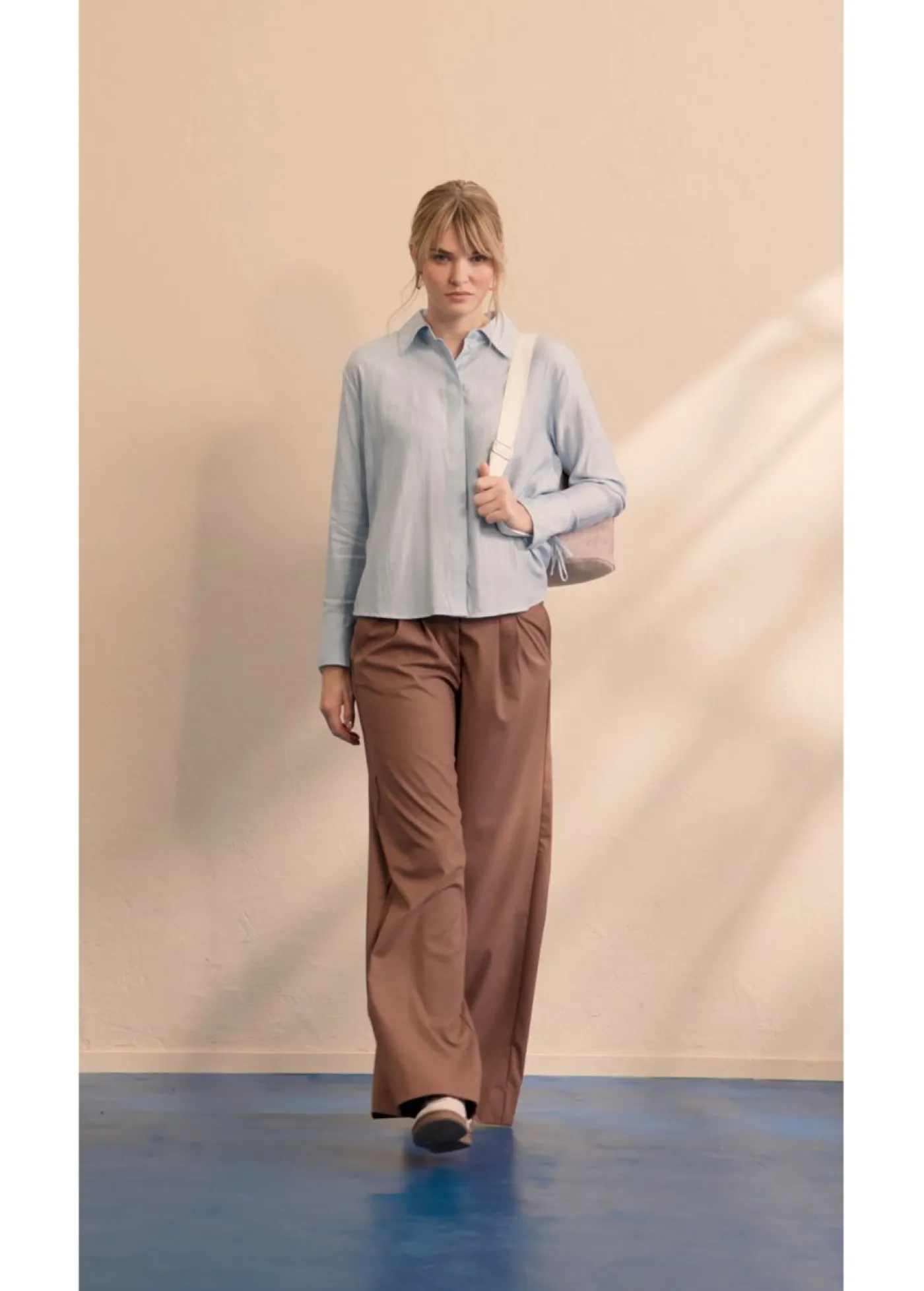Blusa camisera de mezcla de viscosa fluida