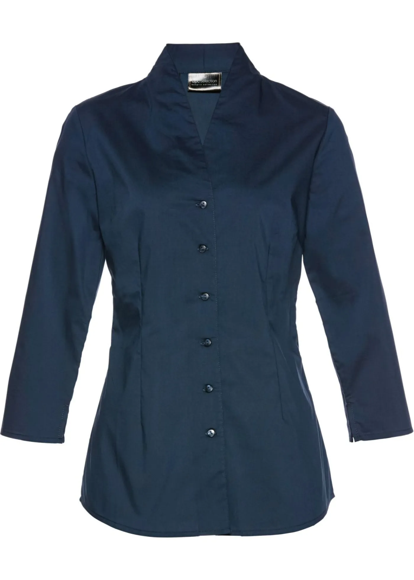 Blusa ajustada con cuello alto y mangas 3/4. Largo de aprox. 65 cm (talla 36) a aprox. 74 cm (talla 54). Se puede lavar a máquina.