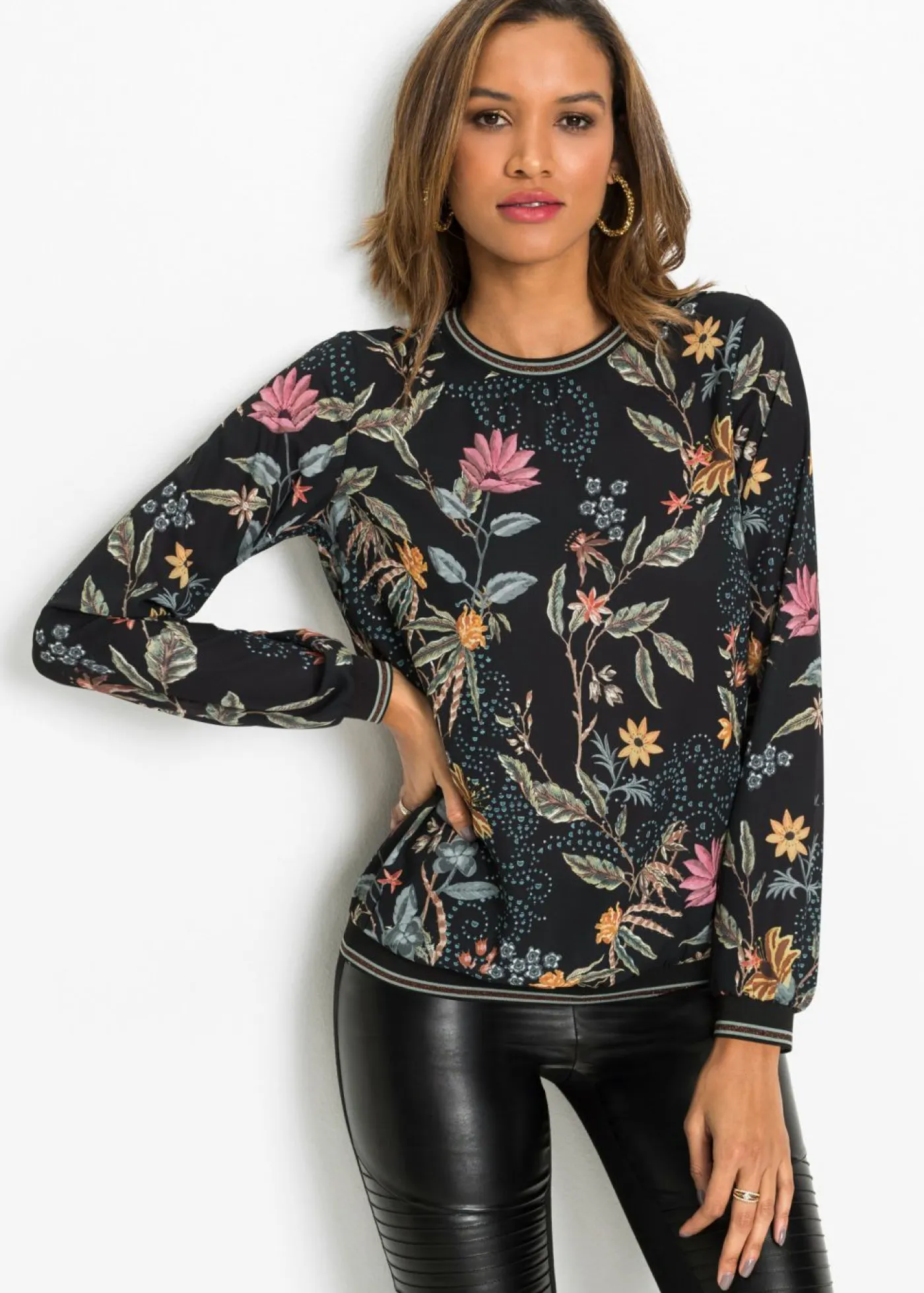 Elegante blusa con estampado moderno. Largo de aprox. 64 cm en talla 36/38.