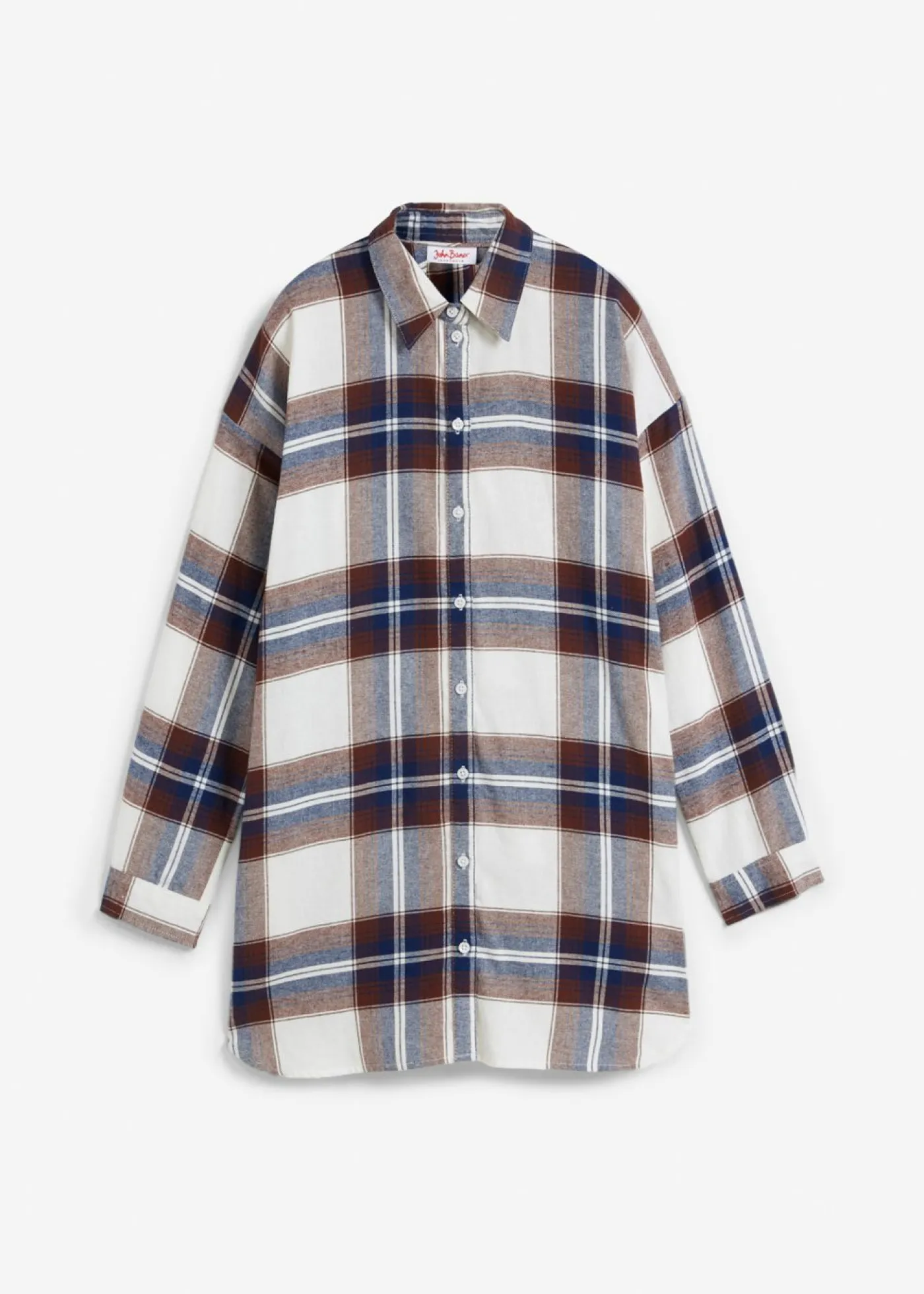 Blusa holgada de franela de algodón puro con botones en la parte delantera. Largo de aprox. 80 cm en talla 42. Se puede lavar a máquina.