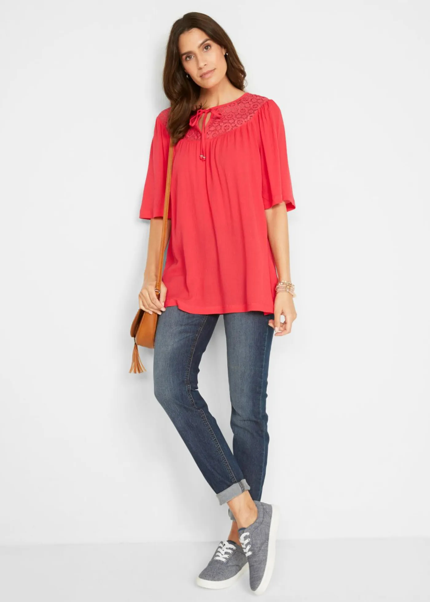 La túnica con caída se ha confeccionado en 100 % viscosa y favorece la figura. Largo de aprox. 70 cm (talla 38) a aprox. 79 cm (talla 56). Se puede lavar a máquina.