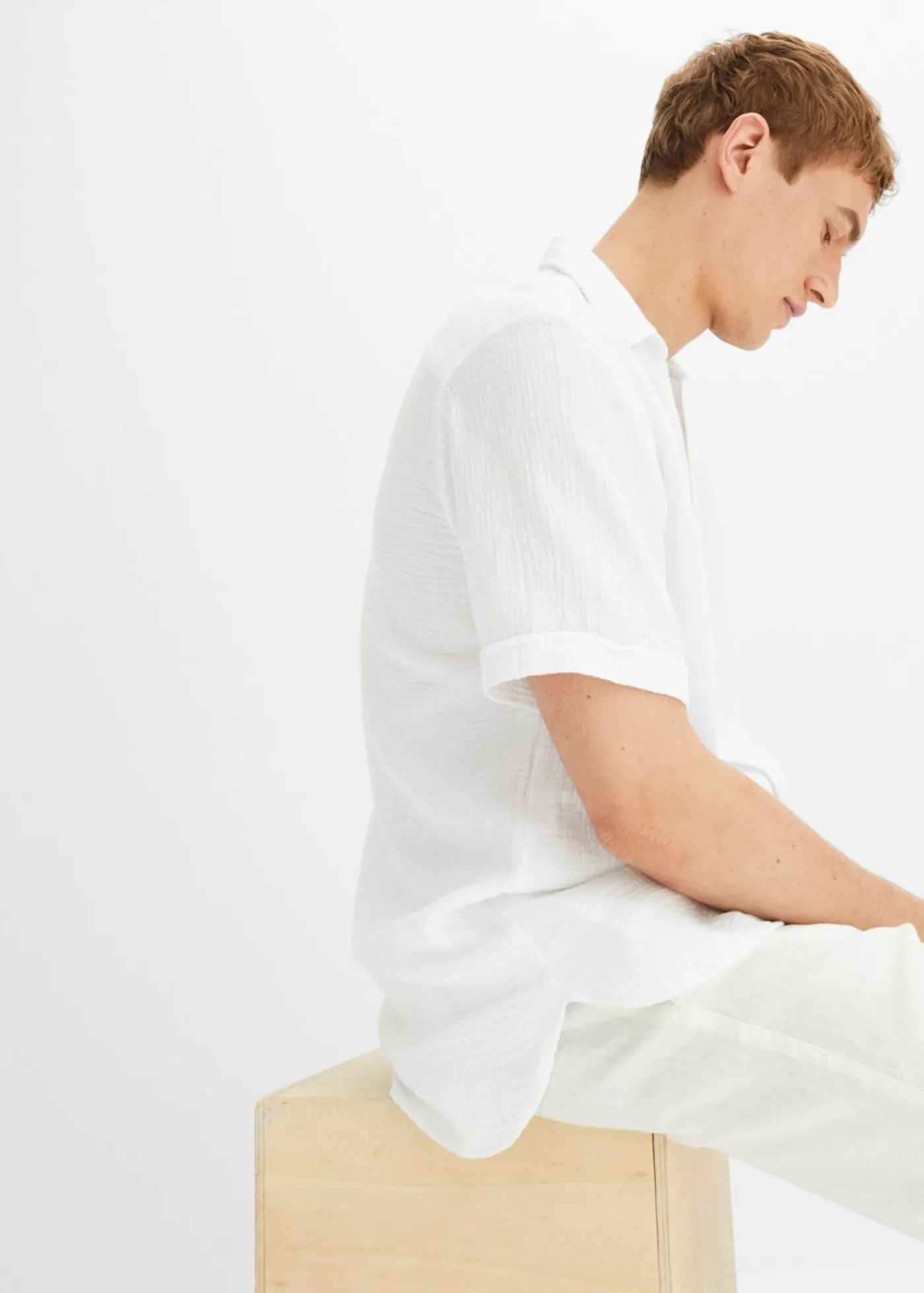 Camisa moderna de muselina con manga corta y corte normal.