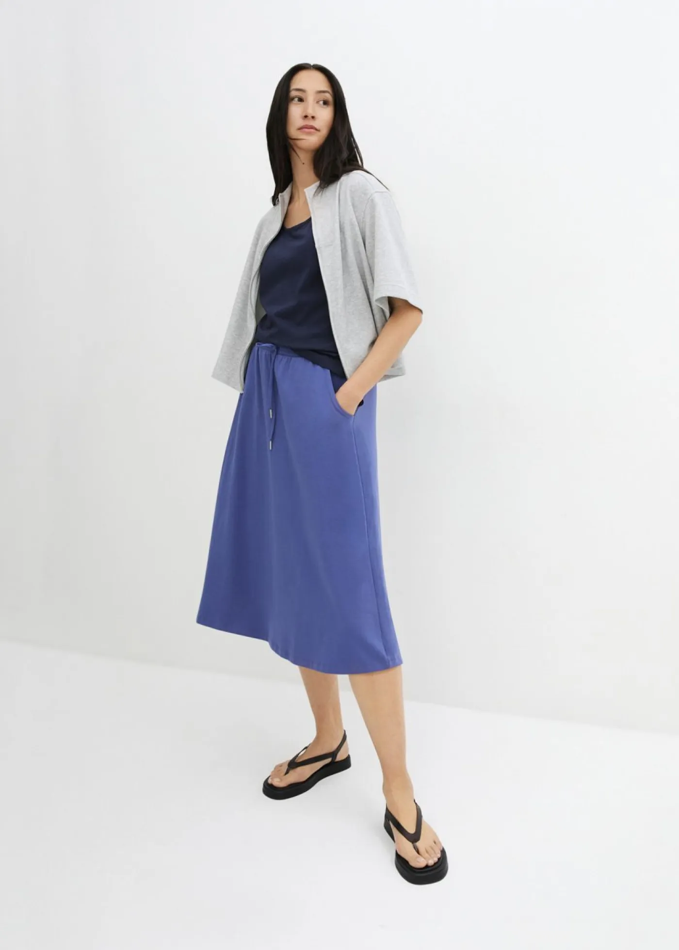 Cómodo top largo de punto sencillo. Gris claro jaspeado: 90 % algodón, 10 % viscosa, colores no jaspeados: 100 % algodón.