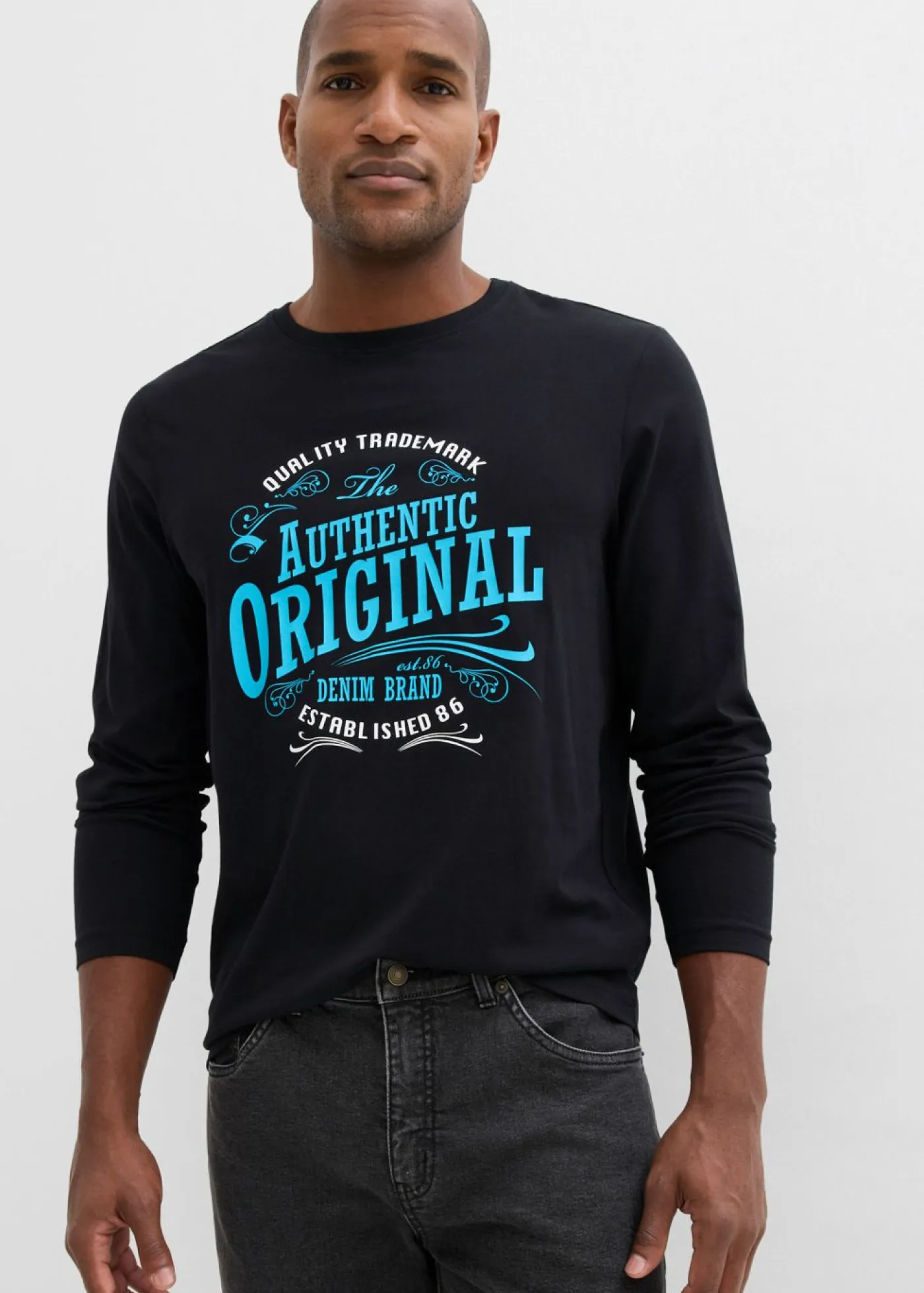 Camiseta moderna con manga larga, cuello redondo y un gran estampado.