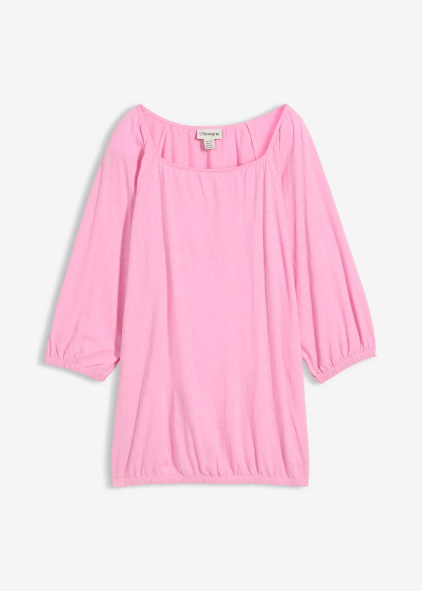 Camiseta moderna con escote cuadrado y favorecedoras mangas abullonadas. Largo de aprox. 70 cm en talla 40/42. Se puede lavar a máquina.
