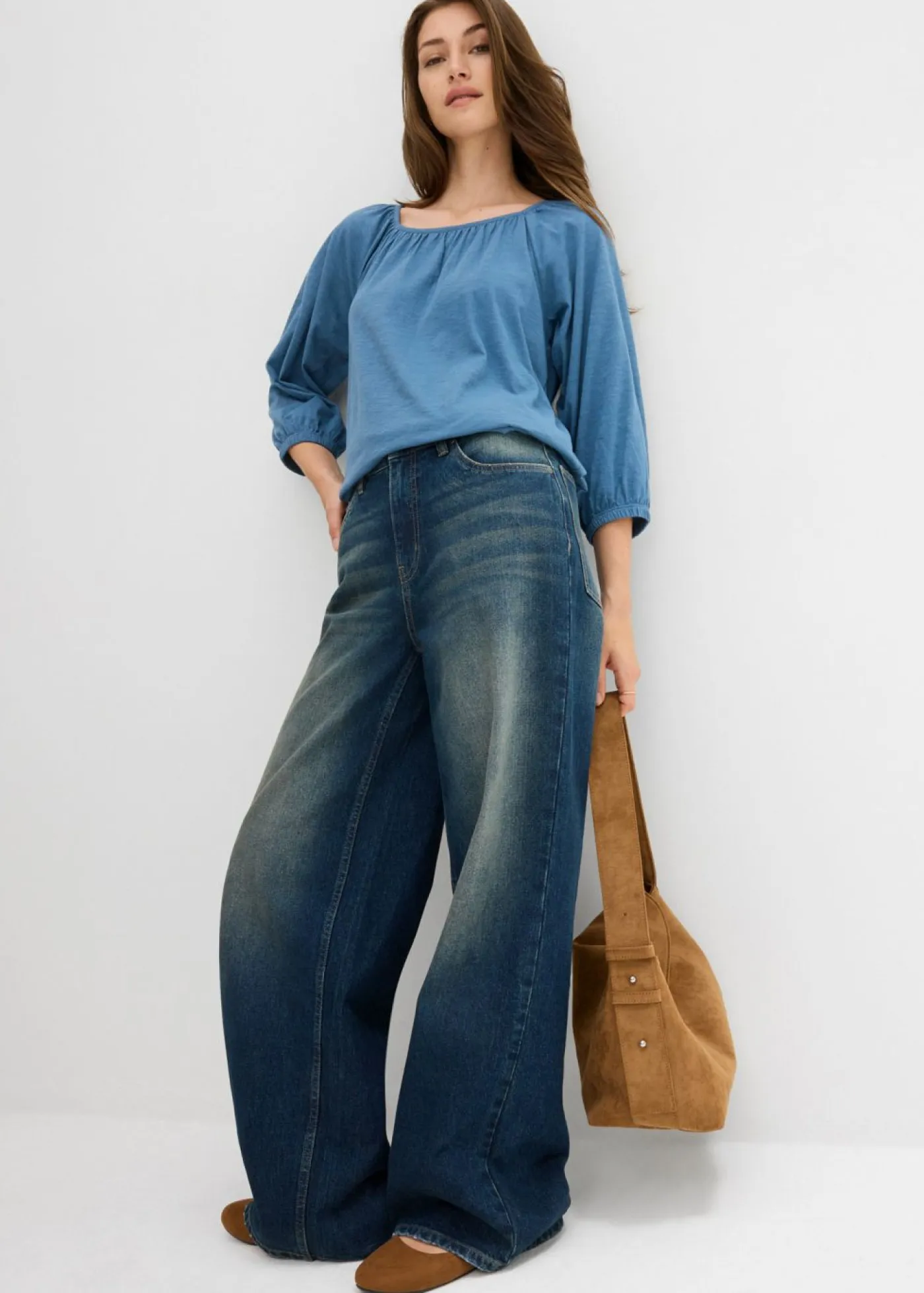 Camiseta moderna con escote cuadrado y favorecedoras mangas abullonadas. Largo de aprox. 70 cm en talla 40/42. Se puede lavar a máquina.