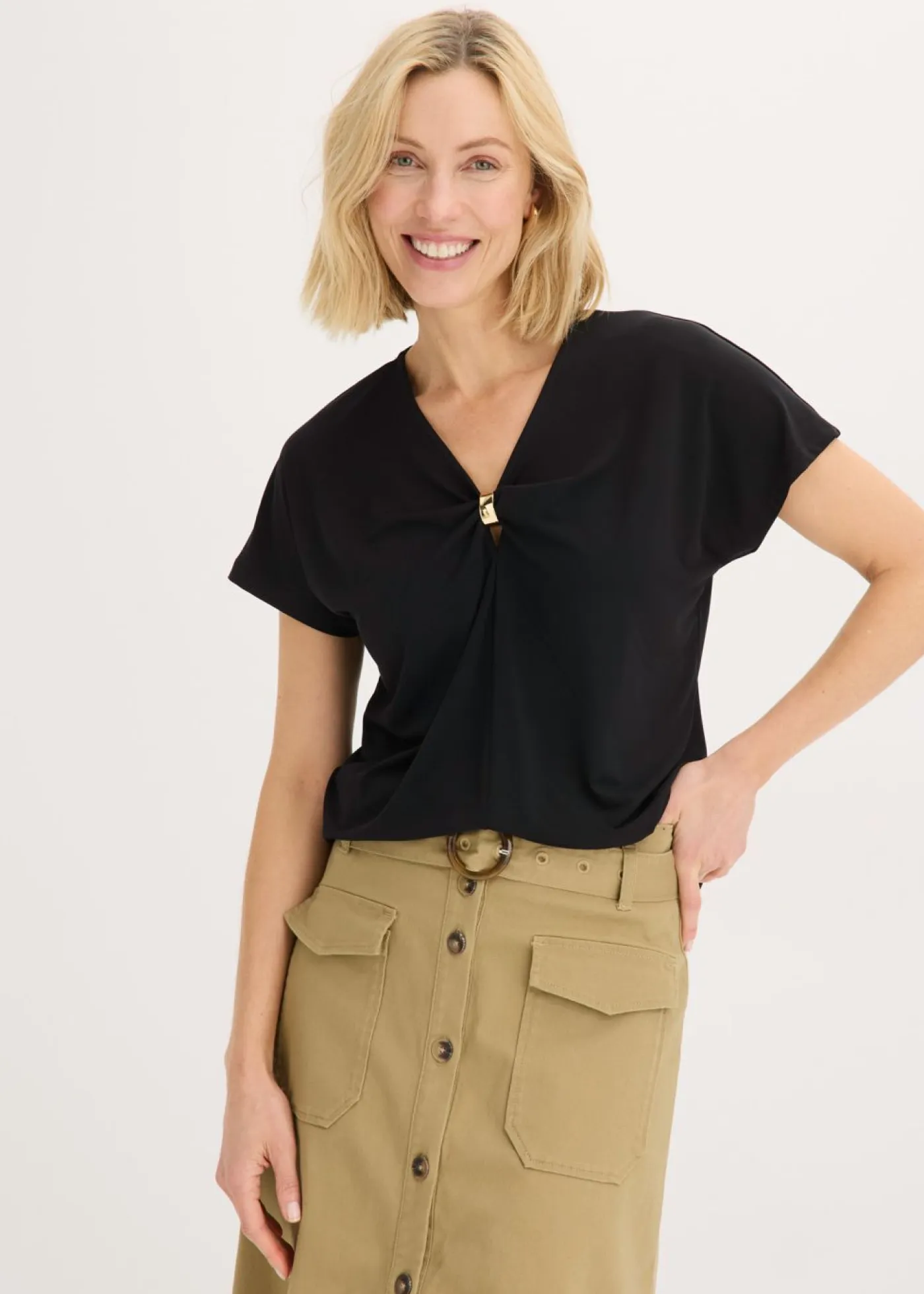 Elegante camiseta con anillo decorativo.