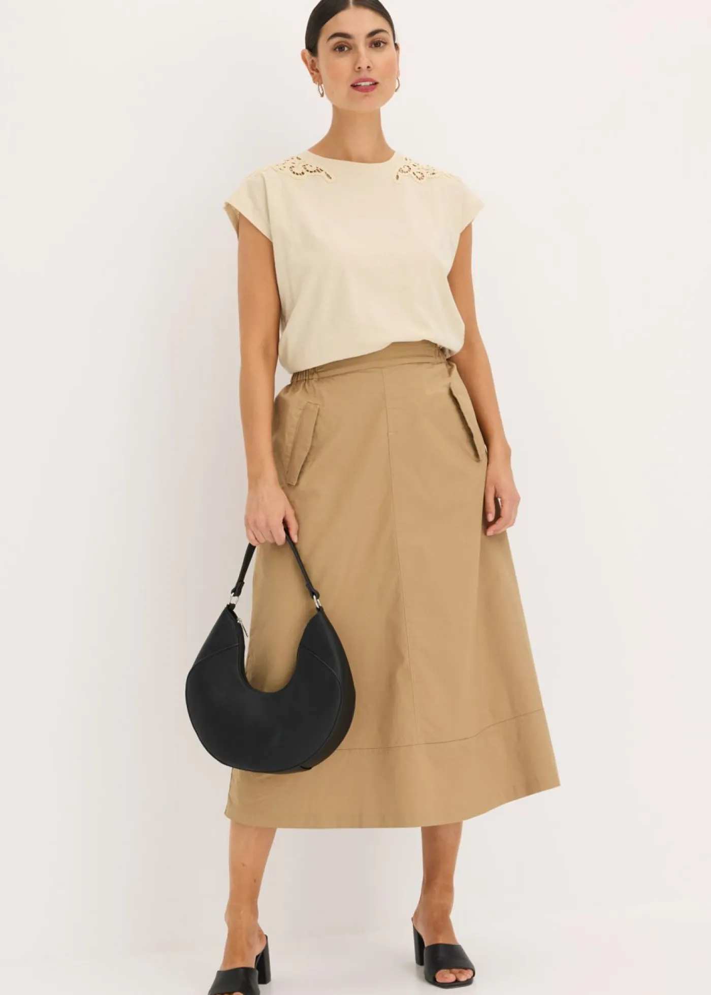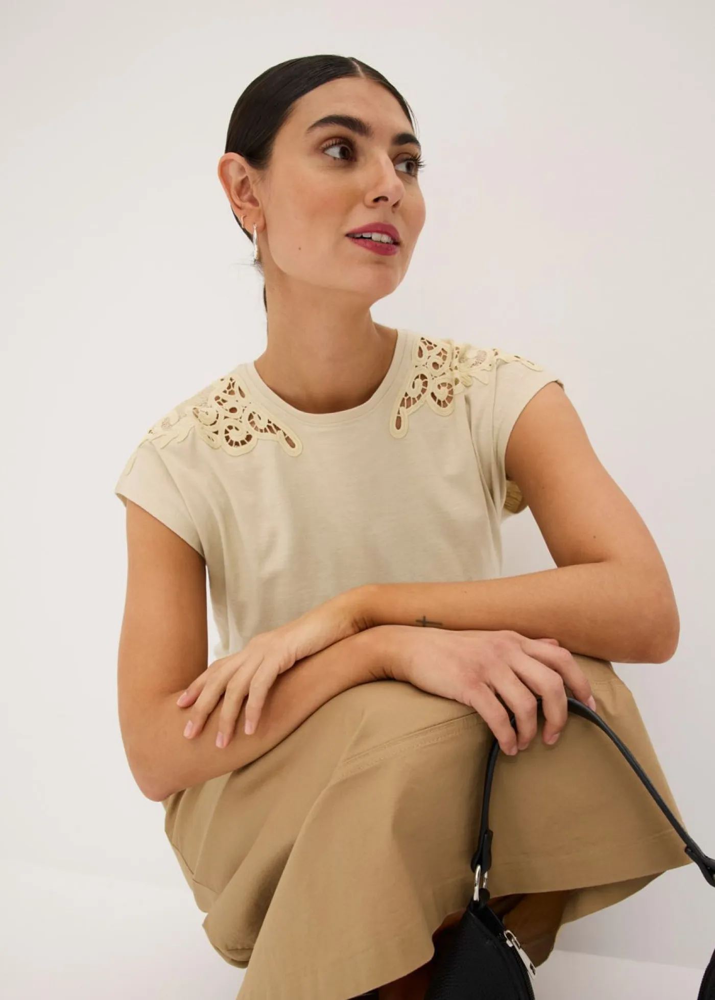 Camiseta para la lactancia con elegante detalle de ganchillo.
