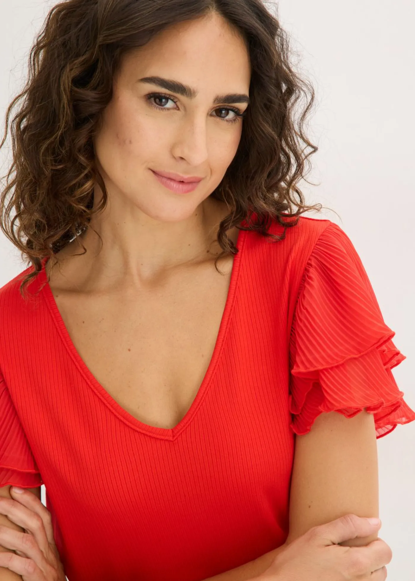 Camiseta de canalé con mangas plisadas con volantes.