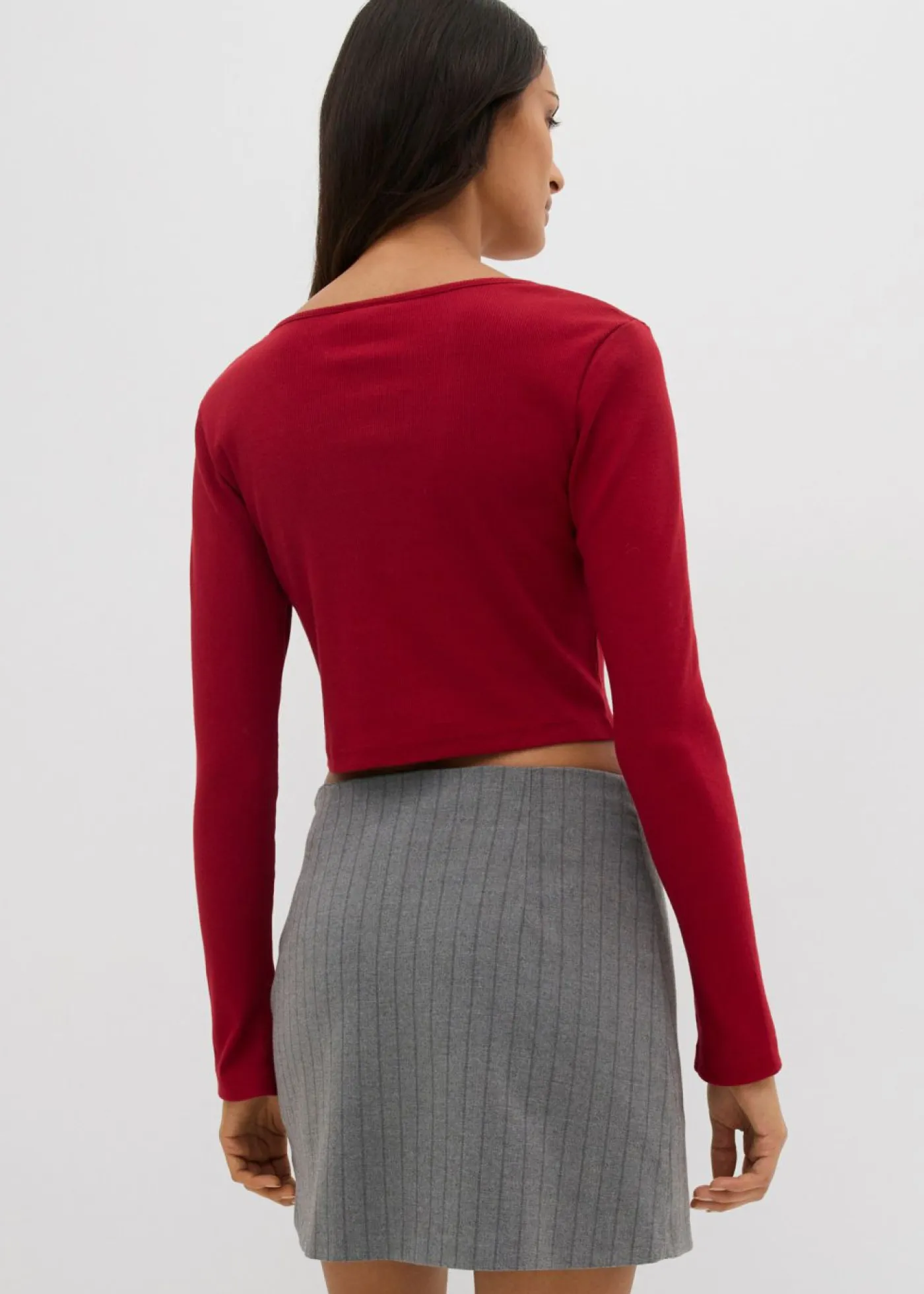 Camiseta informal de canalé con largo acortado.