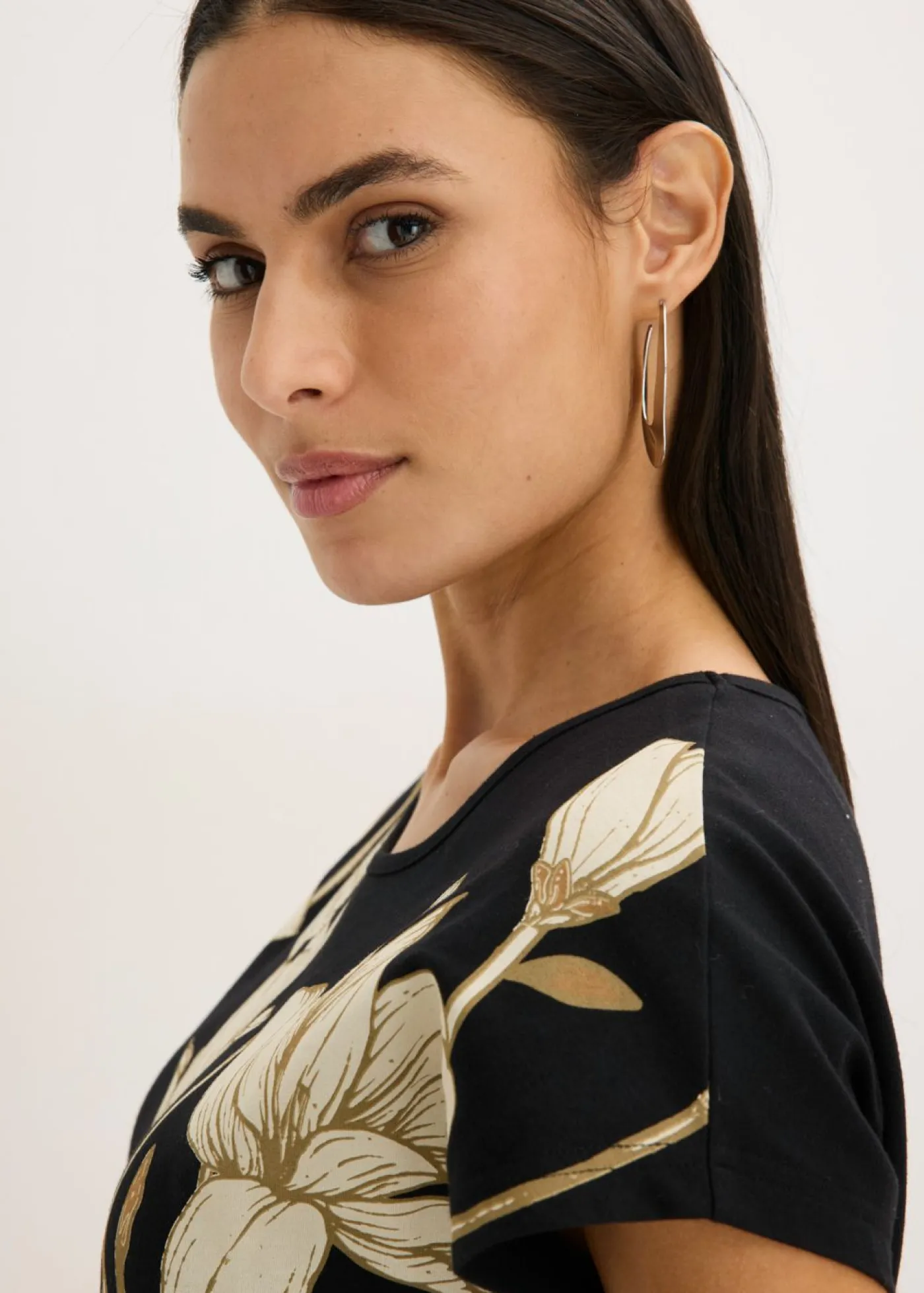 Camisa elegante y cómoda de algodón sostenible con estampado de flores.