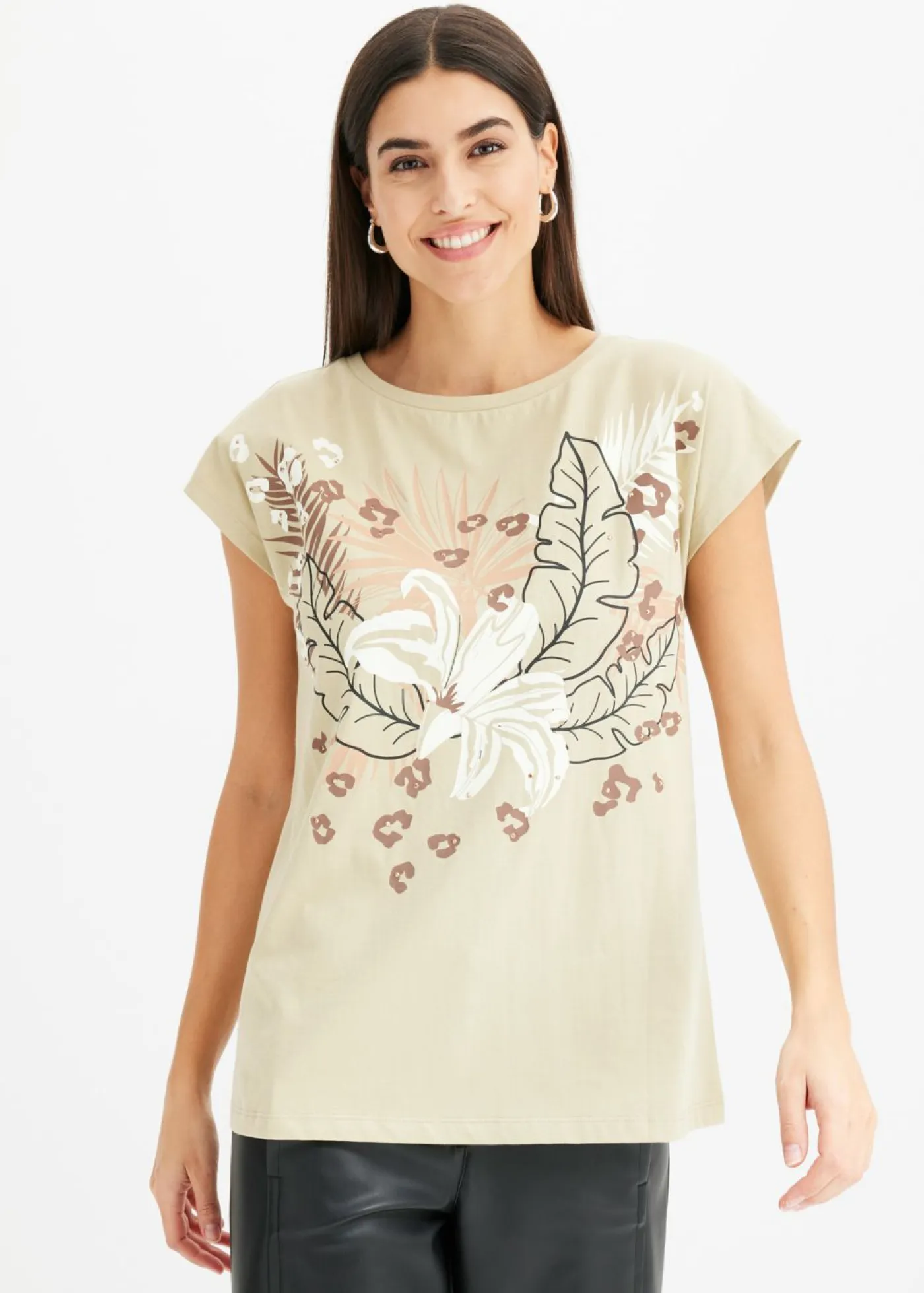 Elegante camiseta de algodón orgánico puro con motivo de palmeras.