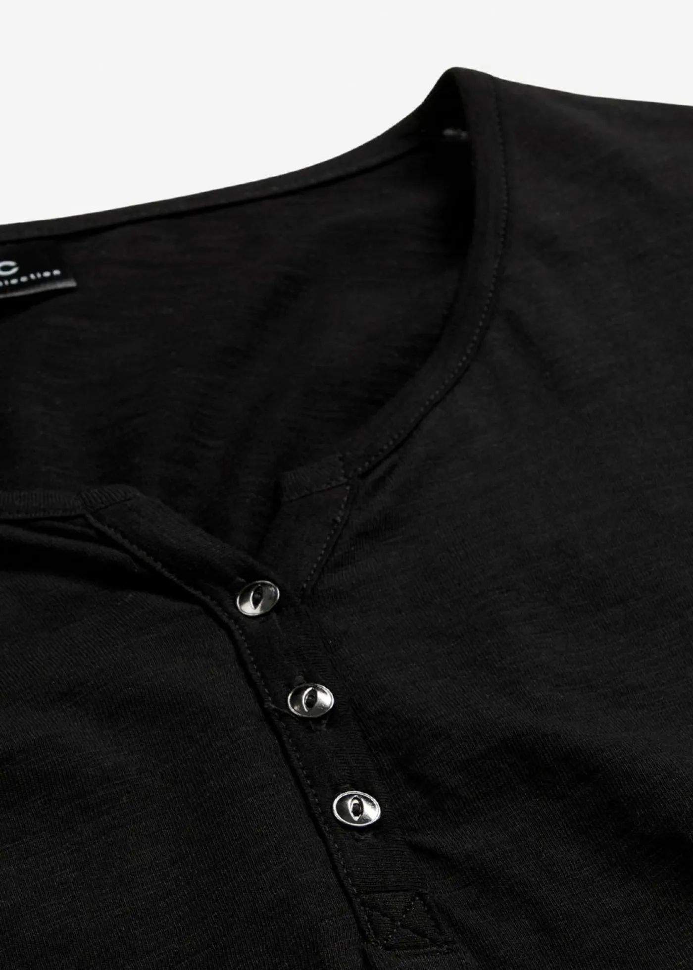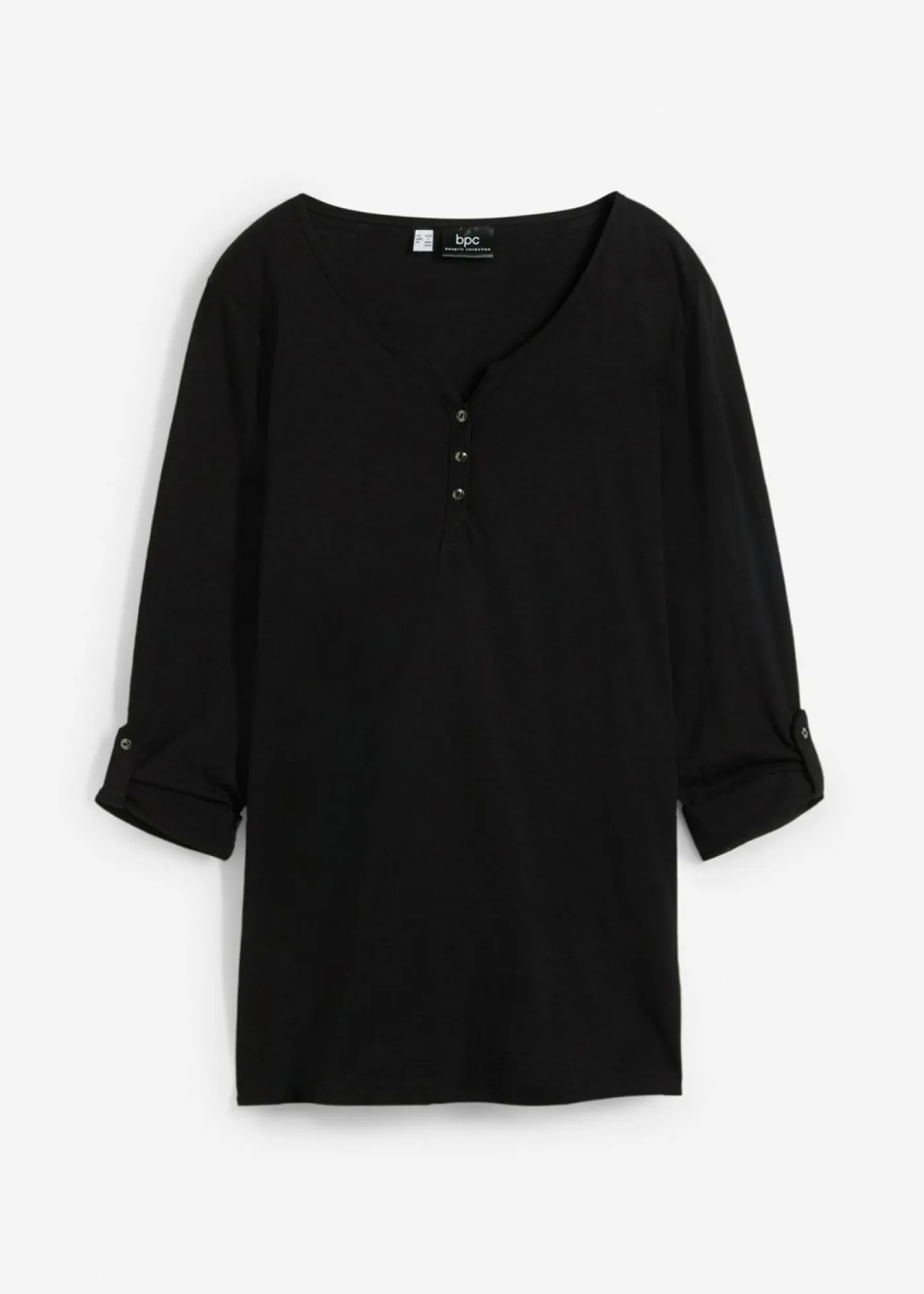 Camiseta ligera con cuello en V decorativo y mangas ajustables. Largo de aprox. 68 cm (talla 36/38) a 78 cm (talla 56/58). Se puede lavar a máquina.
