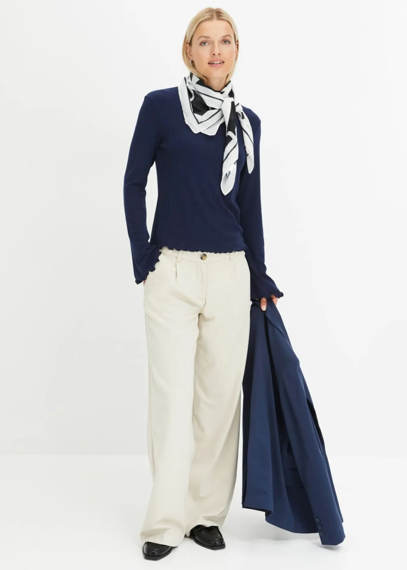 Camiseta de manga larga con mangas acampanadas, dobladillo ondulado y corte slim.