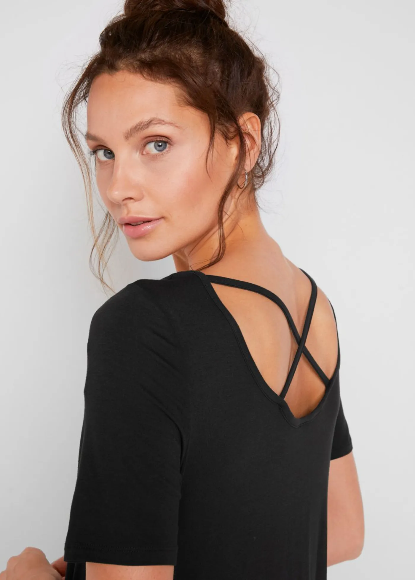 Camiseta larga con punta favorecedora con detalles en la espalda. Largo de aprox. 68 cm (talla 36/38) a aprox. 78 cm (talla 56/58). Se puede lavar a máquina.