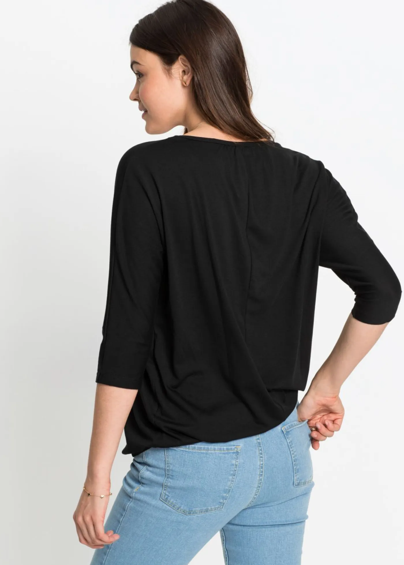 La camiseta holgada estiliza la figura con sus mangas murciélago y su corte informal. Con mangas de murciélago, amplio cuello redondo y dobladillo elástico. Fácil de combinar. Largo de aprox. 70 cm en talla 40/42.