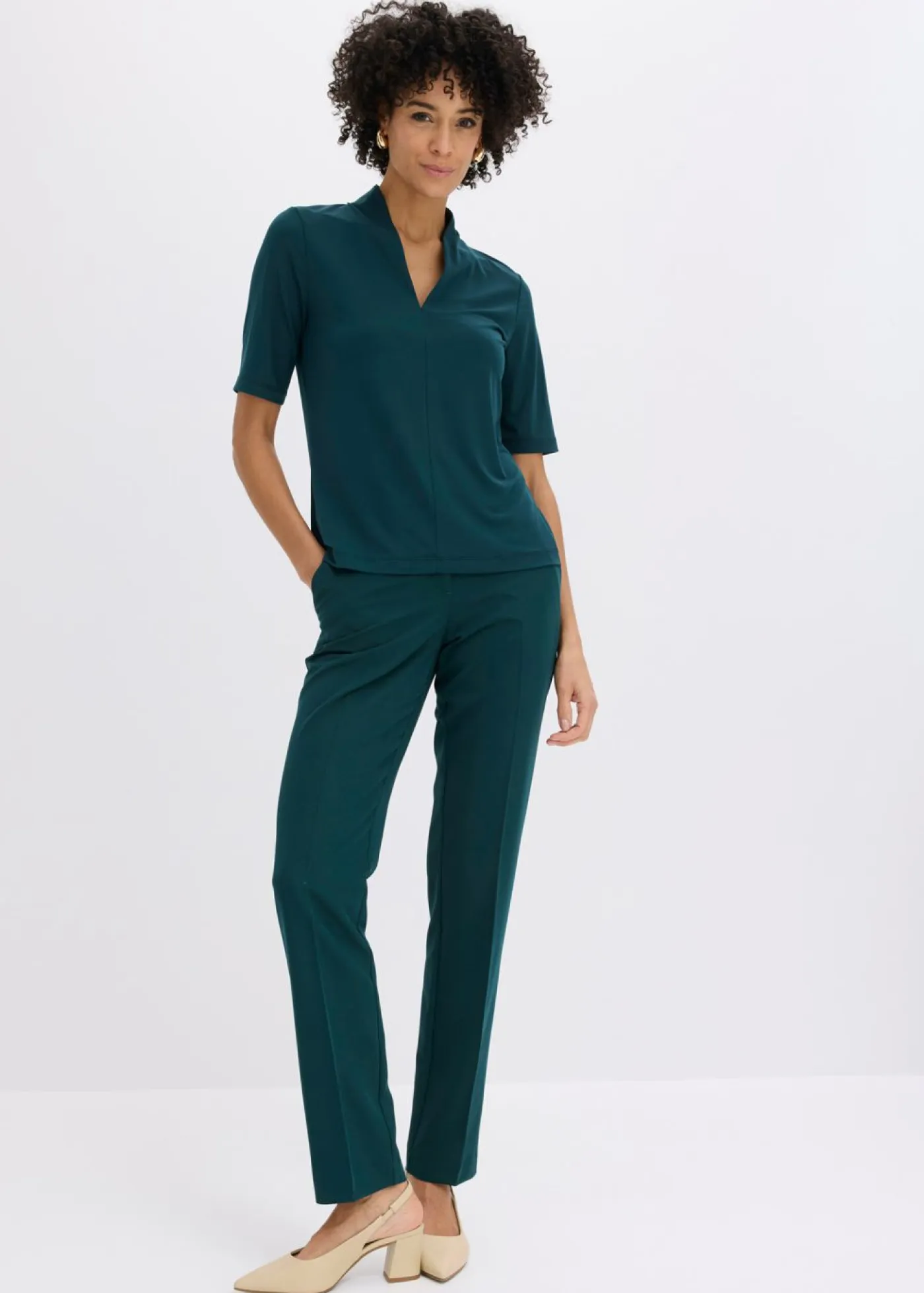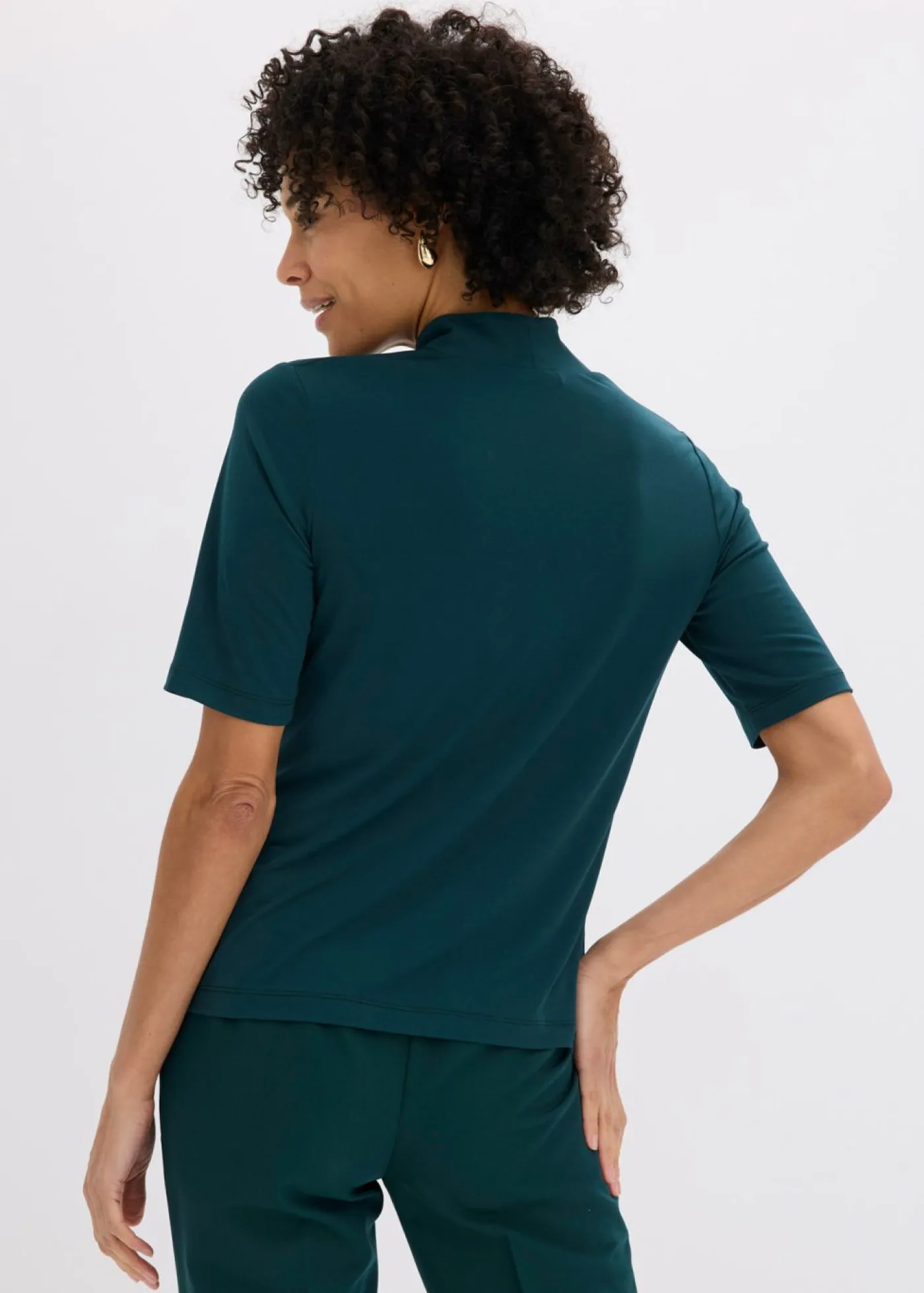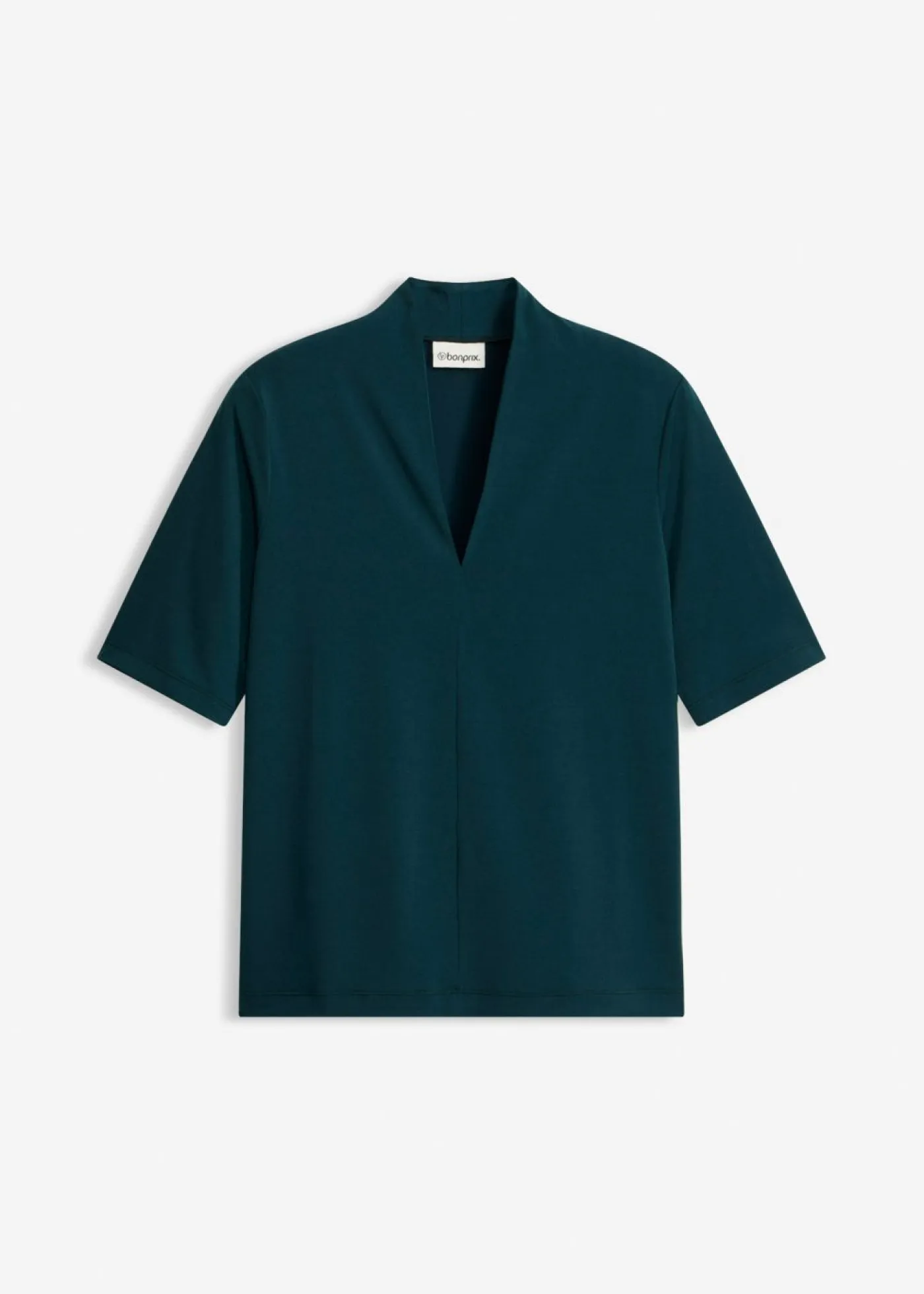 Elegante camiseta con cuello chimenea y escote en V.