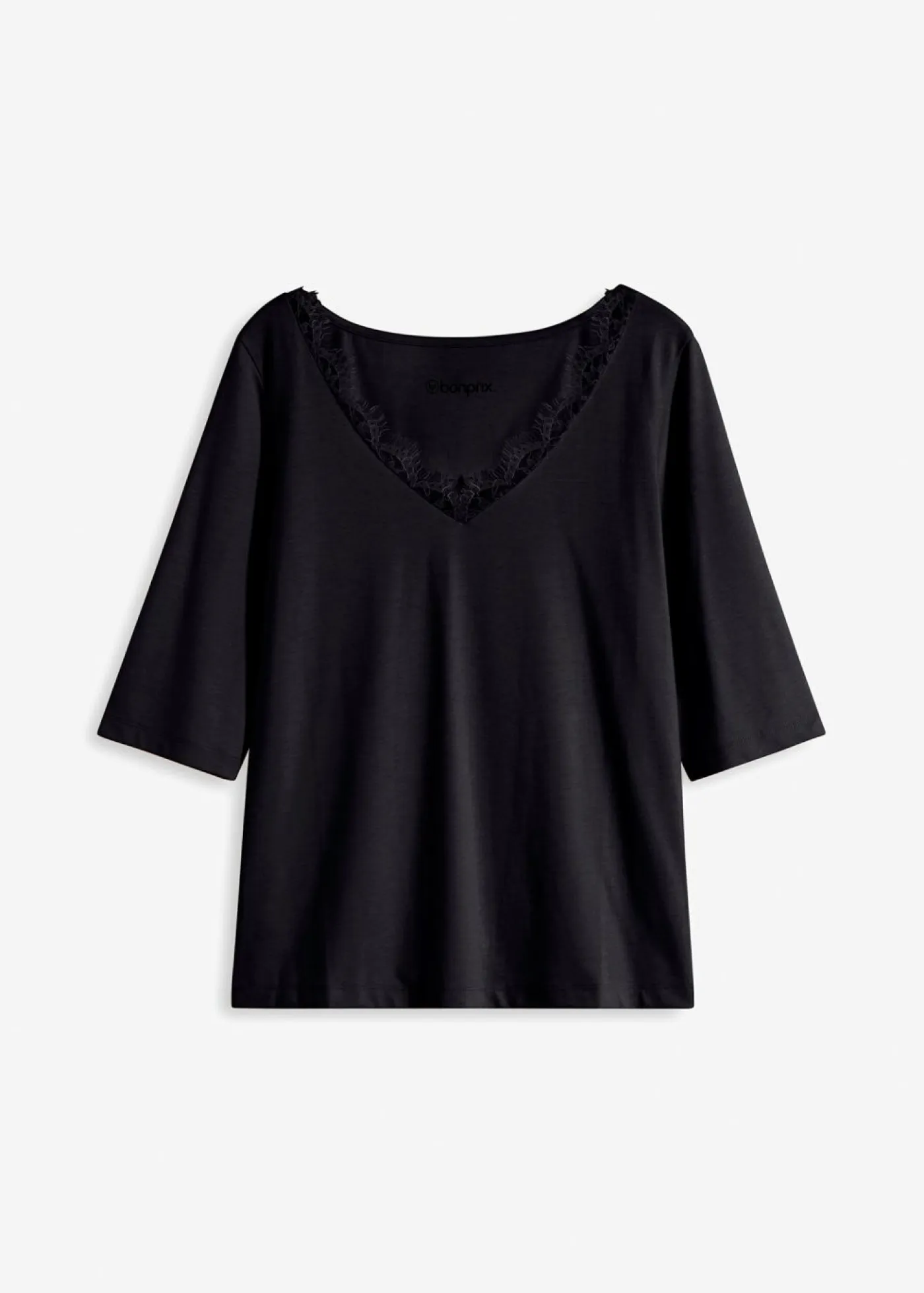 Elegante camiseta con escote en V y encaje.