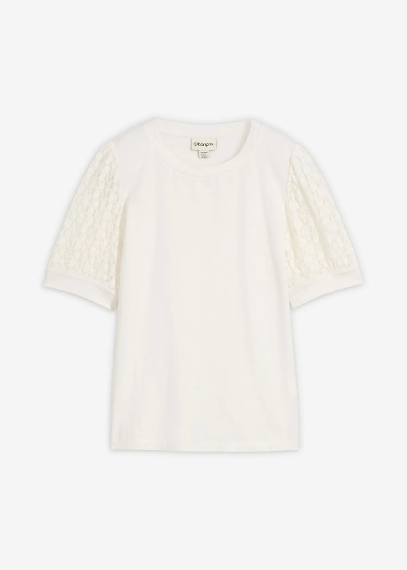Moderna camiseta con mangas abullonadas de encaje de calidad.