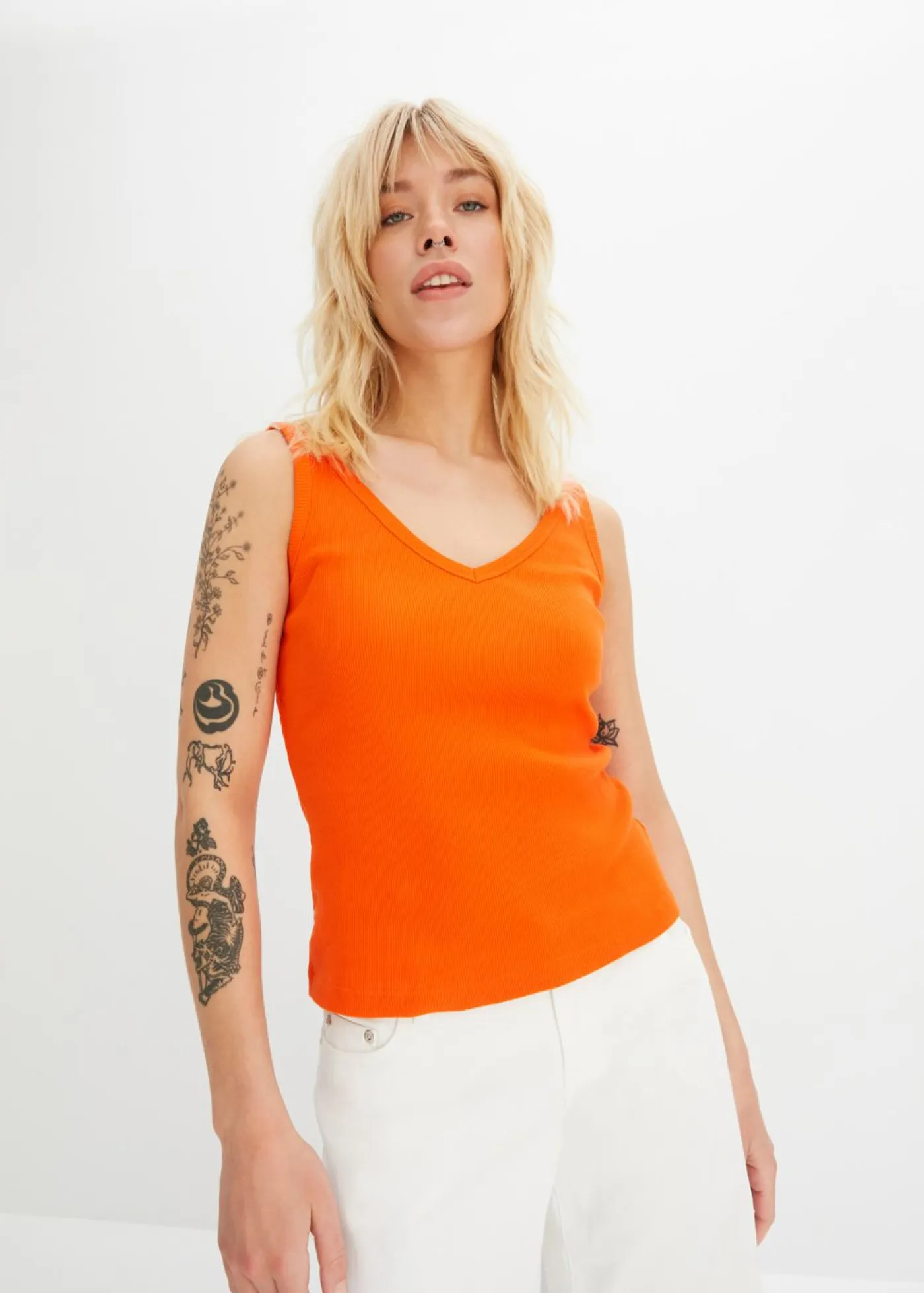 Moderno top de canalé de algodón orgánico puro con escote pronunciado (2 unidades).
