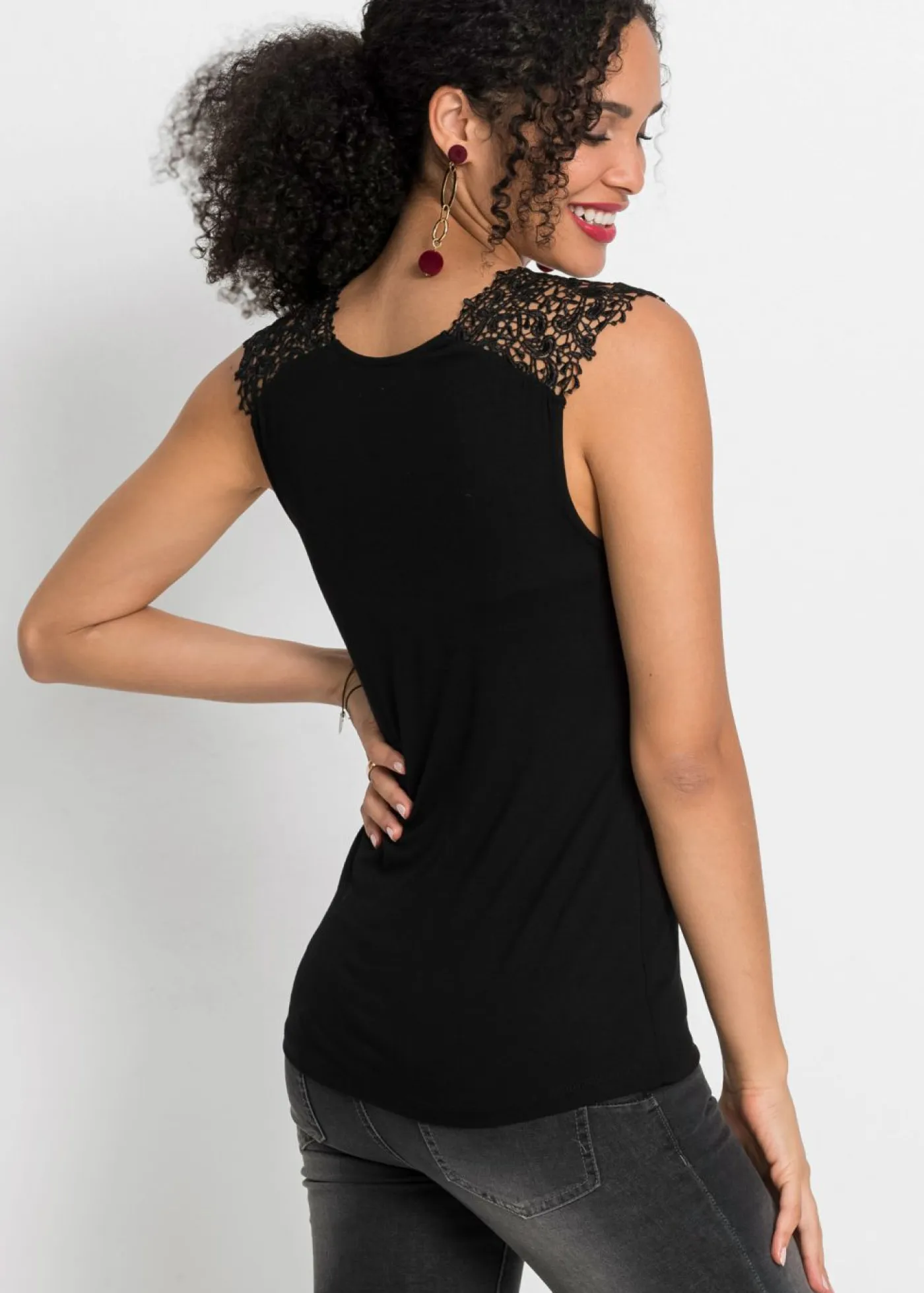 Camiseta sin mangas con encaje de filigrana. Un top sugerente de BODYFLIRT. El top cuenta con un delicado encaje en el escote. Largo de aprox. 64 cm en talla 36/38.