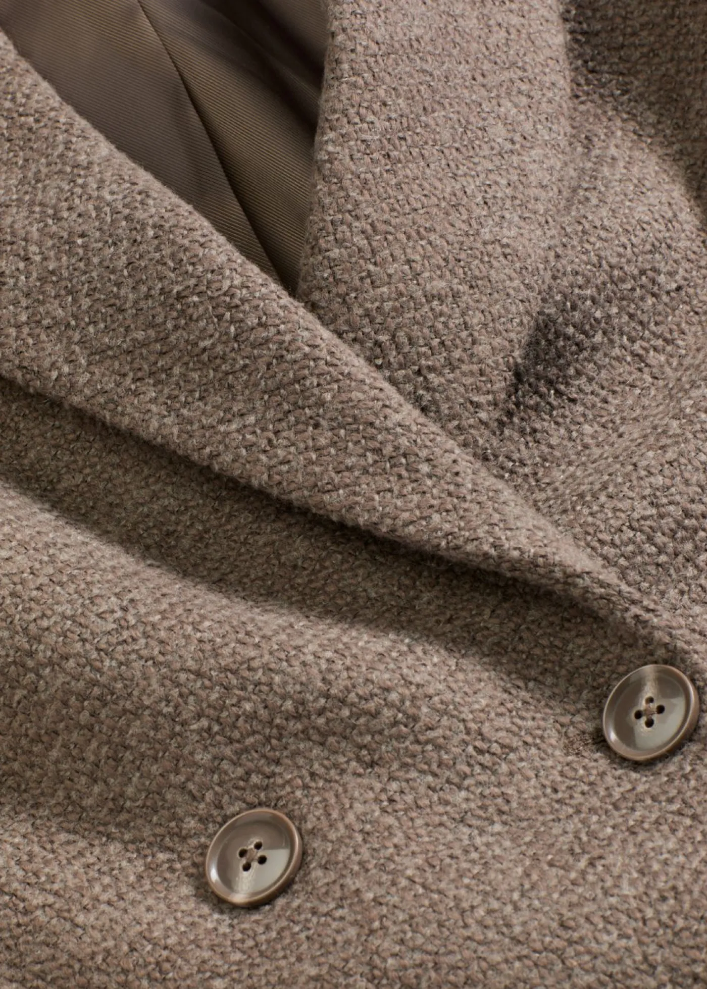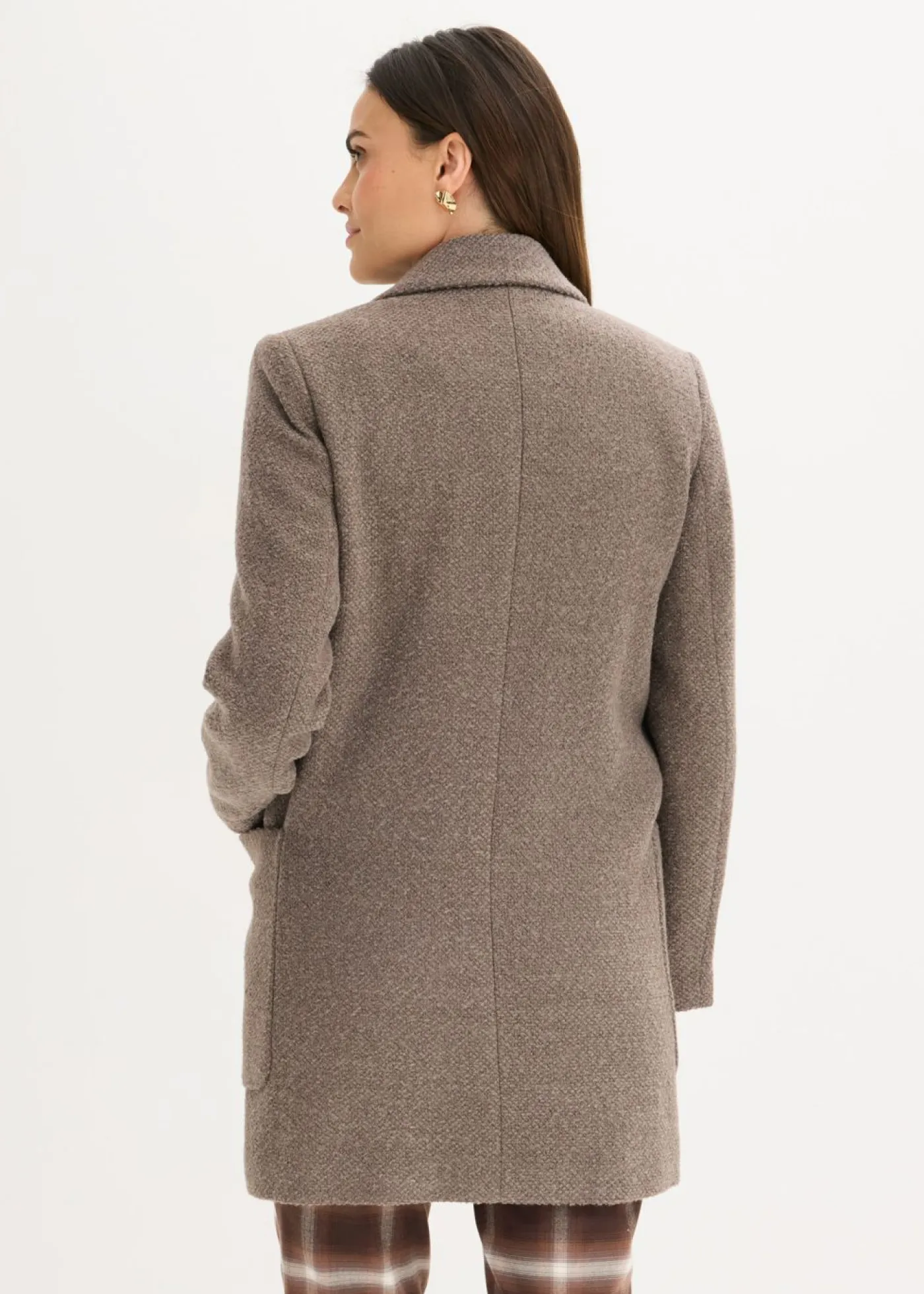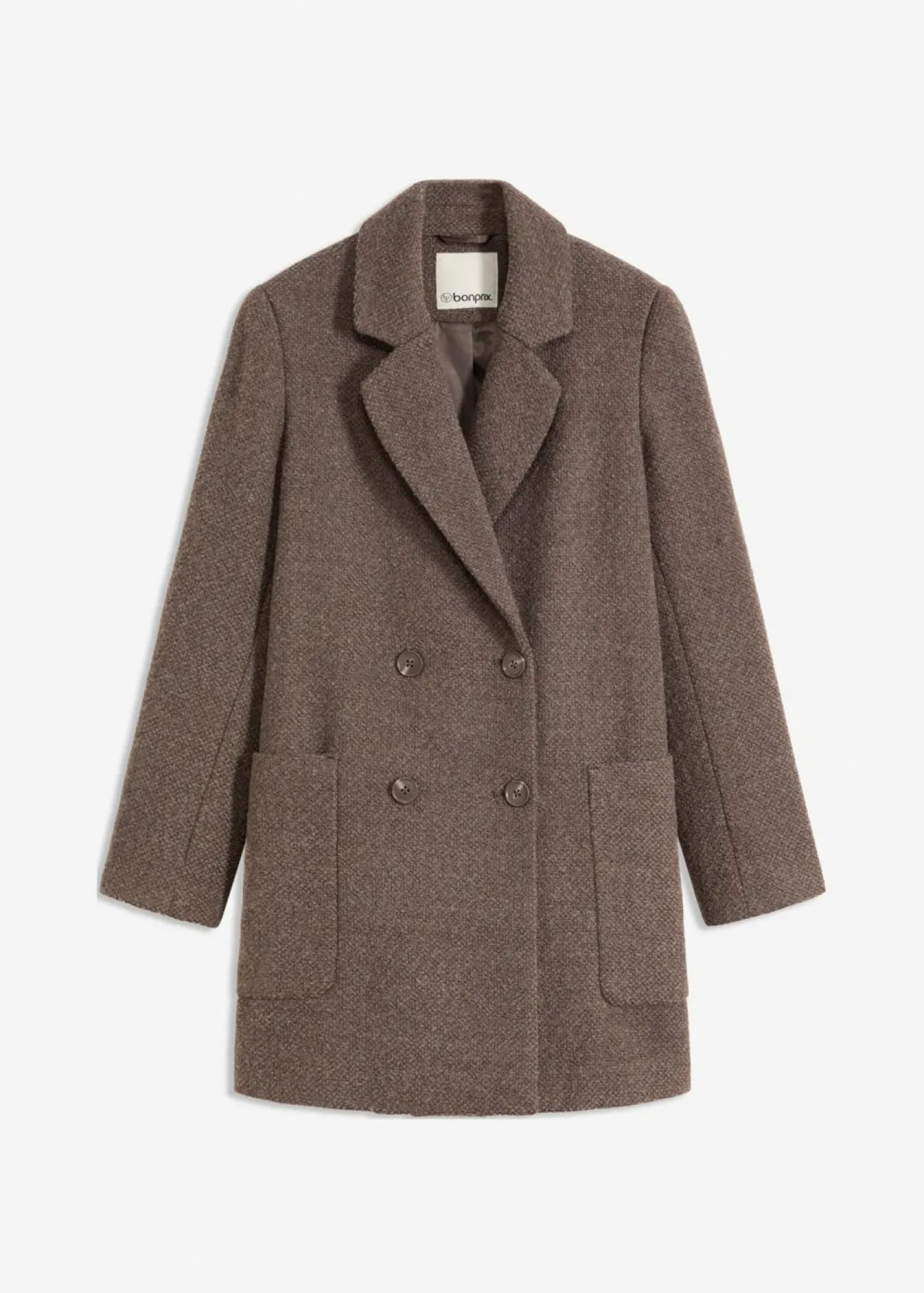 Abrigo corto de doble botonadura con aspecto de lana jaspeada y gran comodidad.