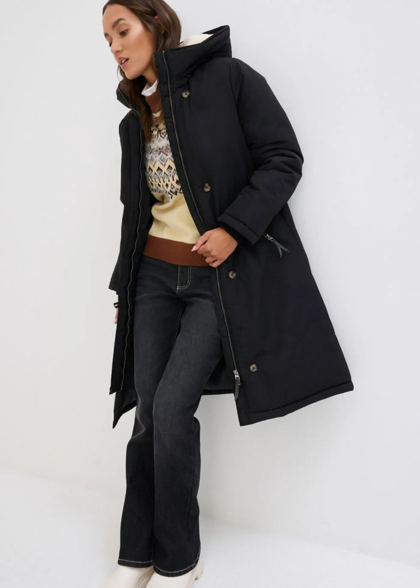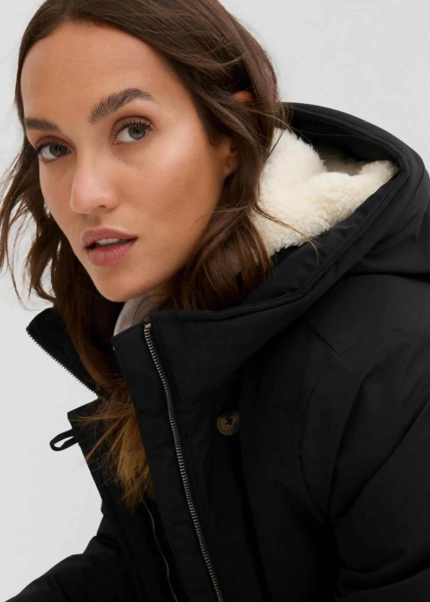 Abrigo de invierno con forro de peluche en la capucha