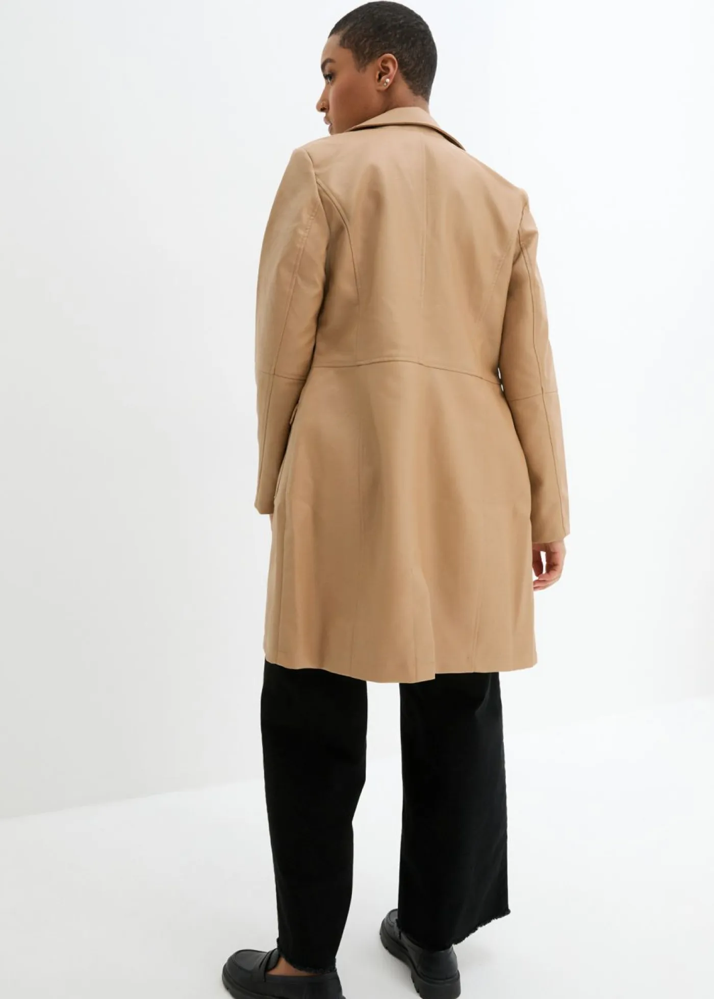 Abrigo ligero y entallado de piel sintética con solapas