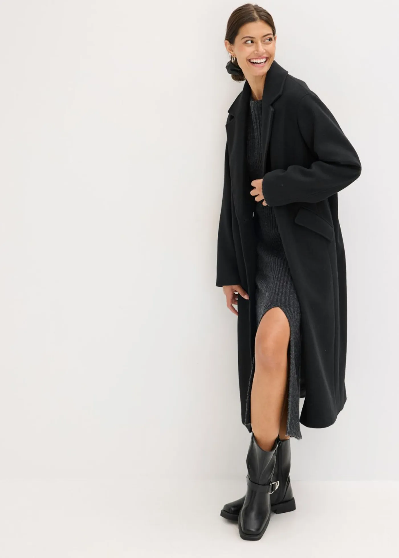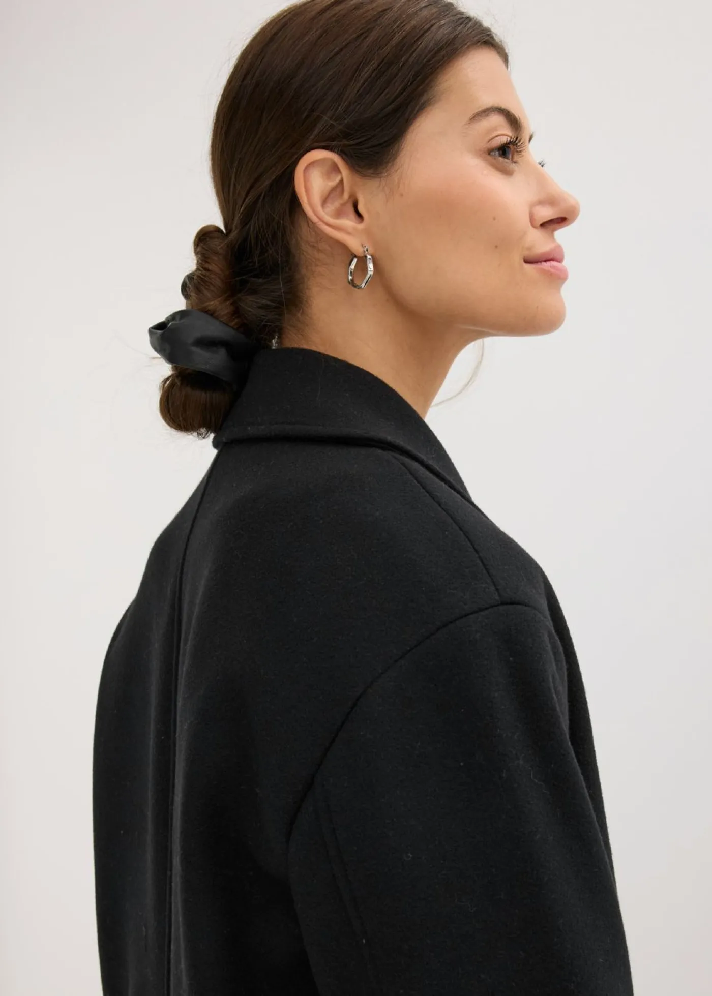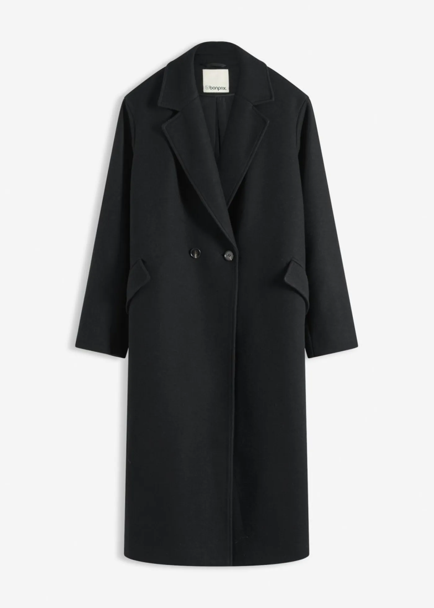 Abrigo con aspecto de lana con solapa ancha.