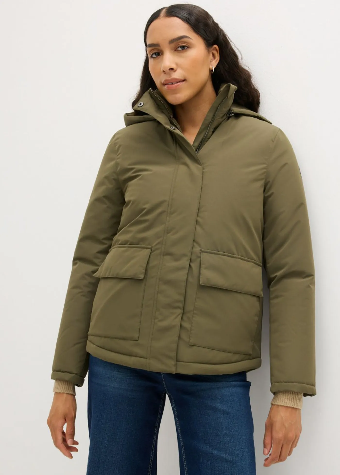 Chaqueta de invierno informal con capucha y grandes bolsillos.