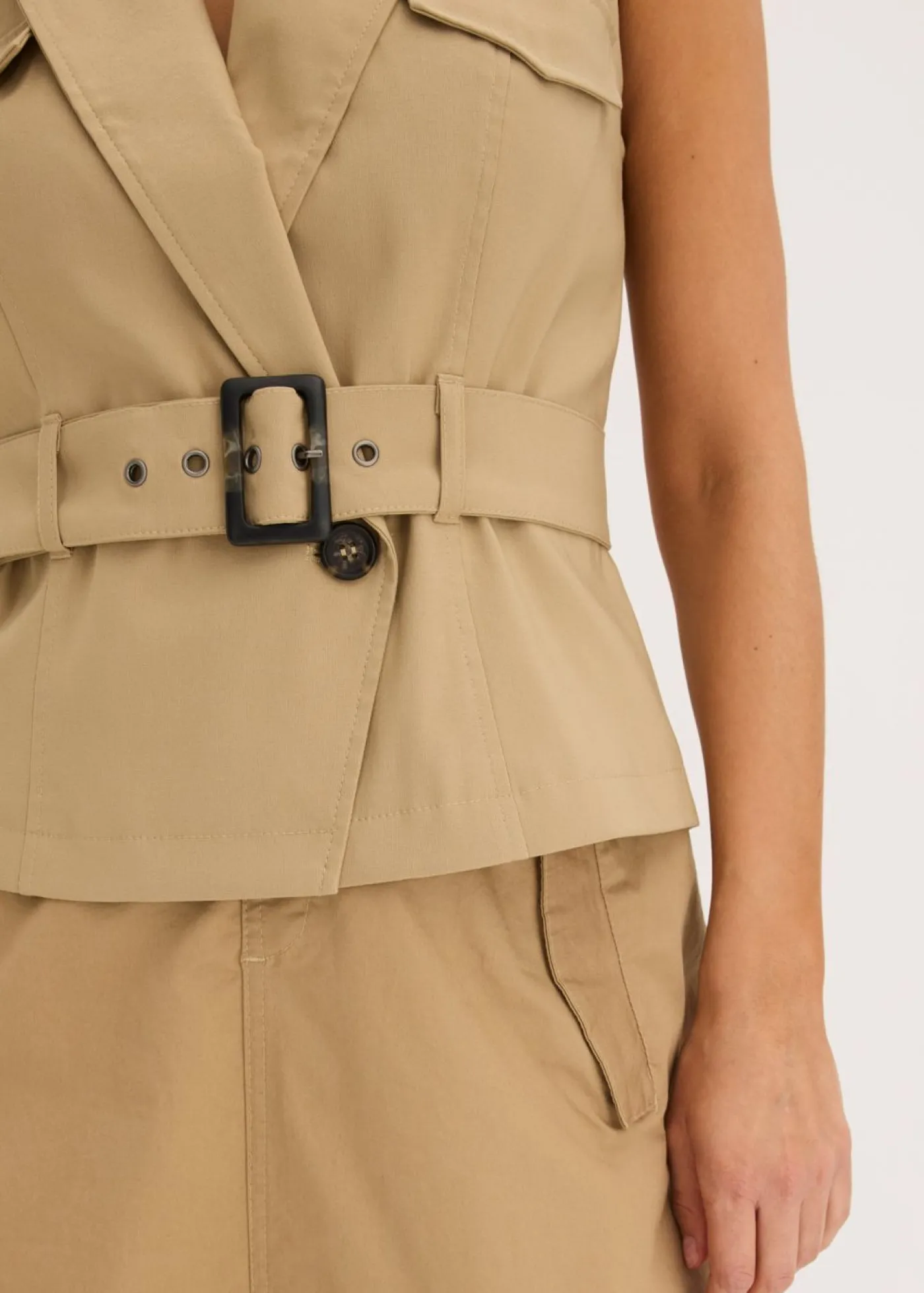 Elegante chaleco con cinturón.