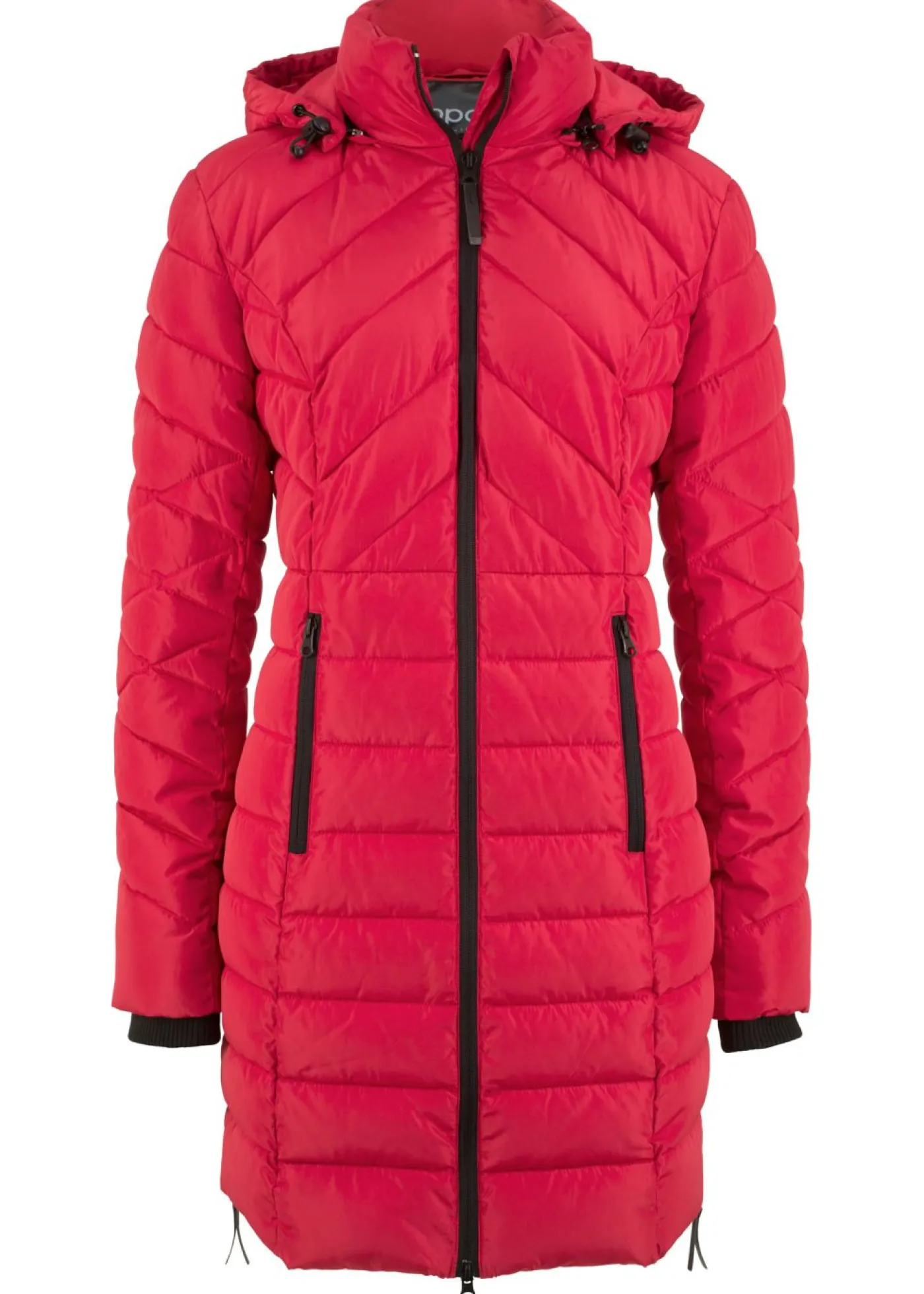 Chaqueta acolchada con un bonito corte largo. Con capucha desmontable. Largo de aprox. 86 cm en talla 42. Se puede lavar a máquina.