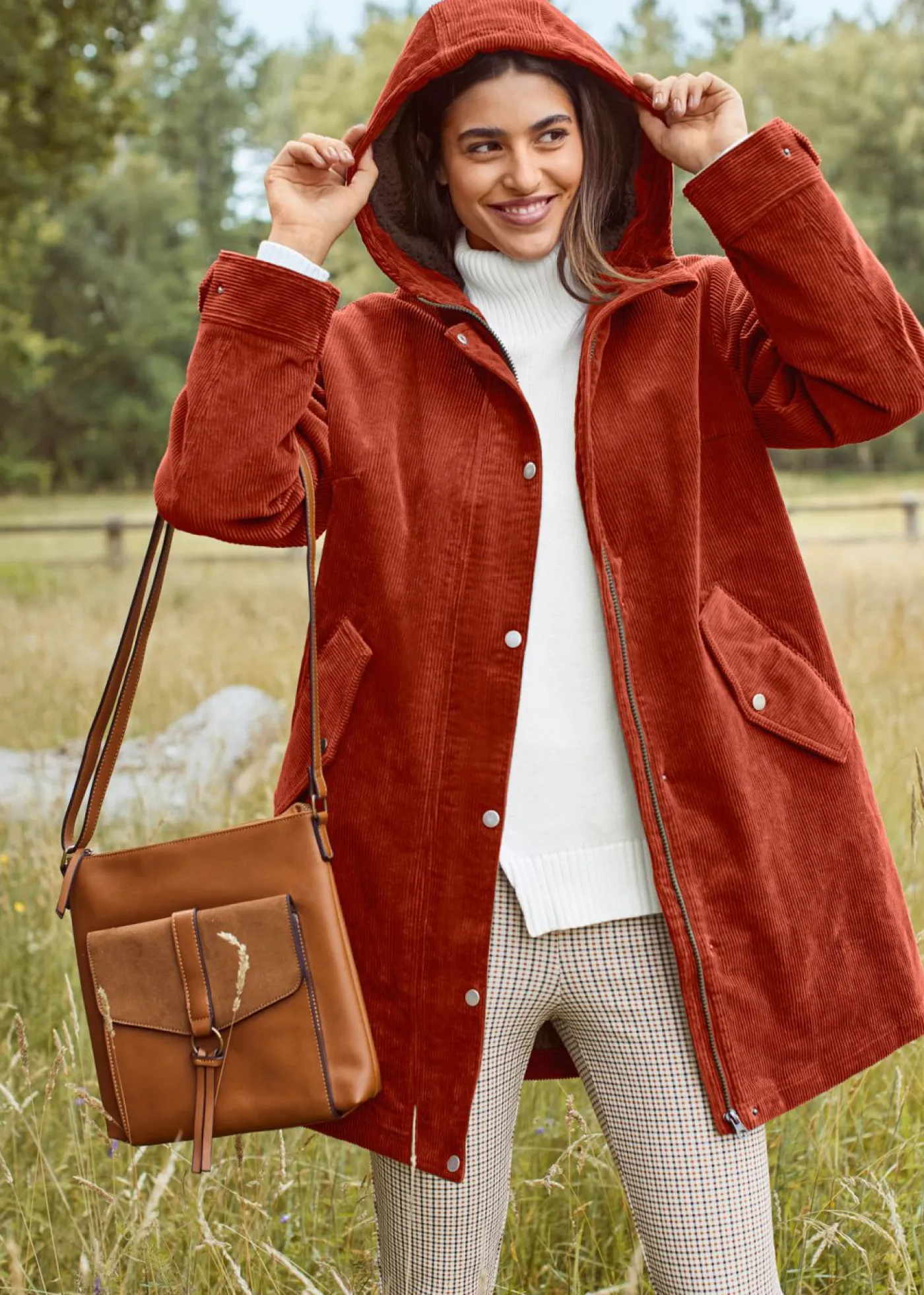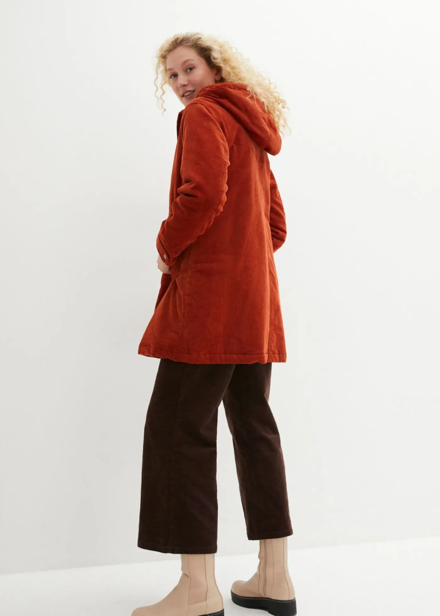 Parka moderna de pana con forro polar agradable en la capucha. Largo de aprox. 86 cm en todas las tallas. Se puede lavar a máquina.