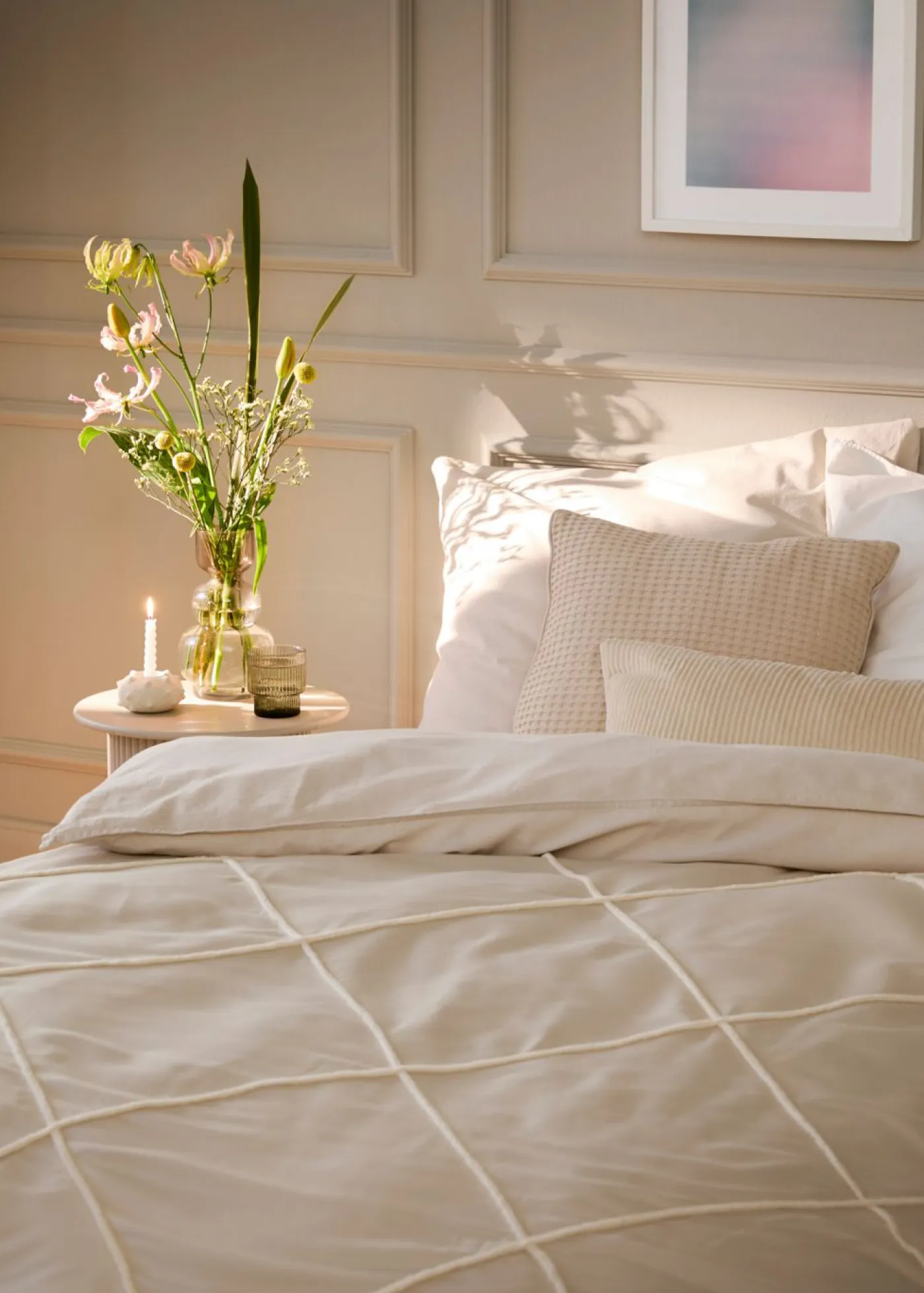 Esta colcha con delicado diseño de rectángulos aporta armonía y calidez a tu hogar. Está hecho de un material resistente y, al mismo tiempo, de fácil cuidado. Disponible en diferentes tamaños, con fundas de almohada a juego en un paquete de 2 unidades de talla 7 y 8.