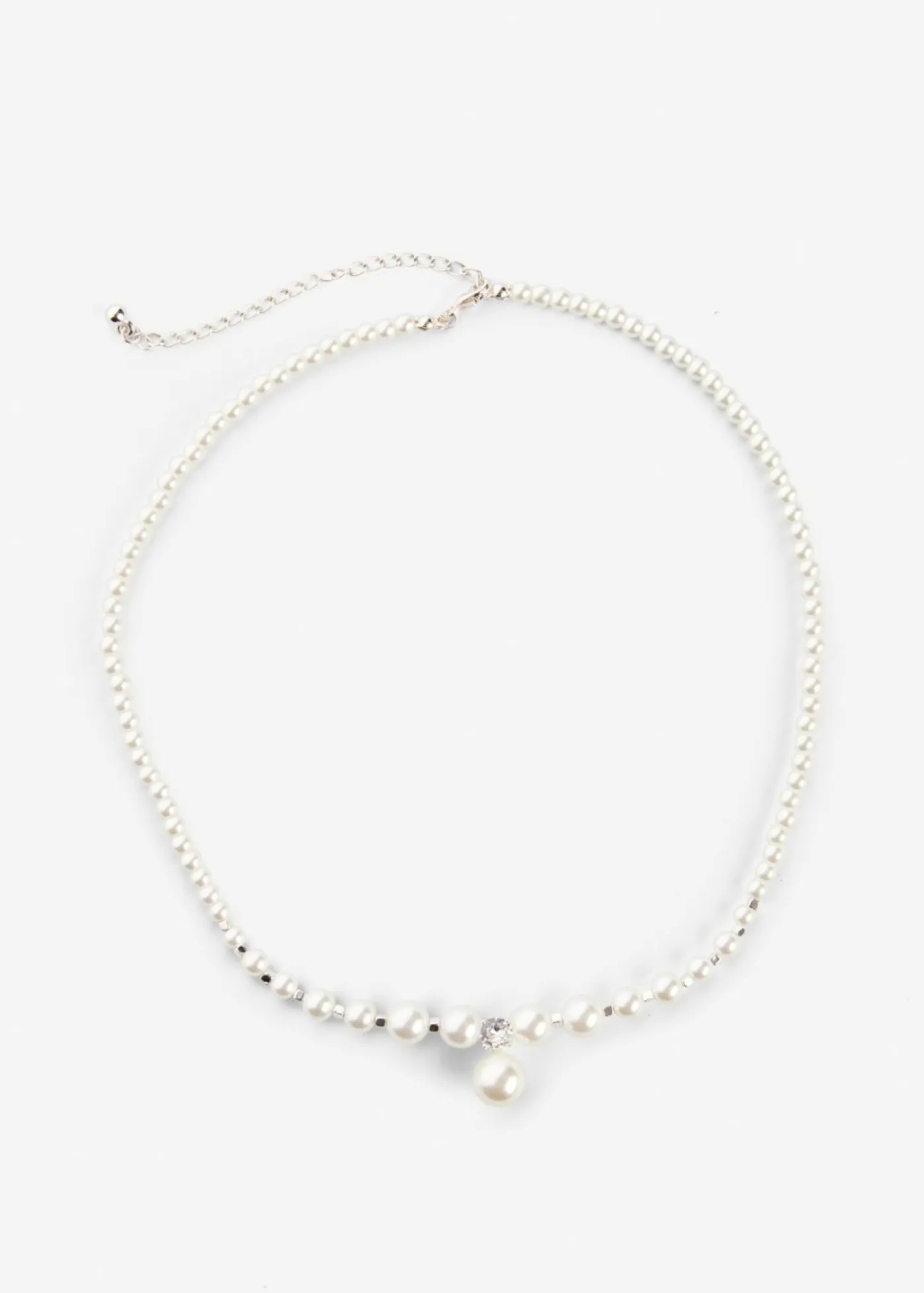 Elegante collar de perlas con piedras brillantes.