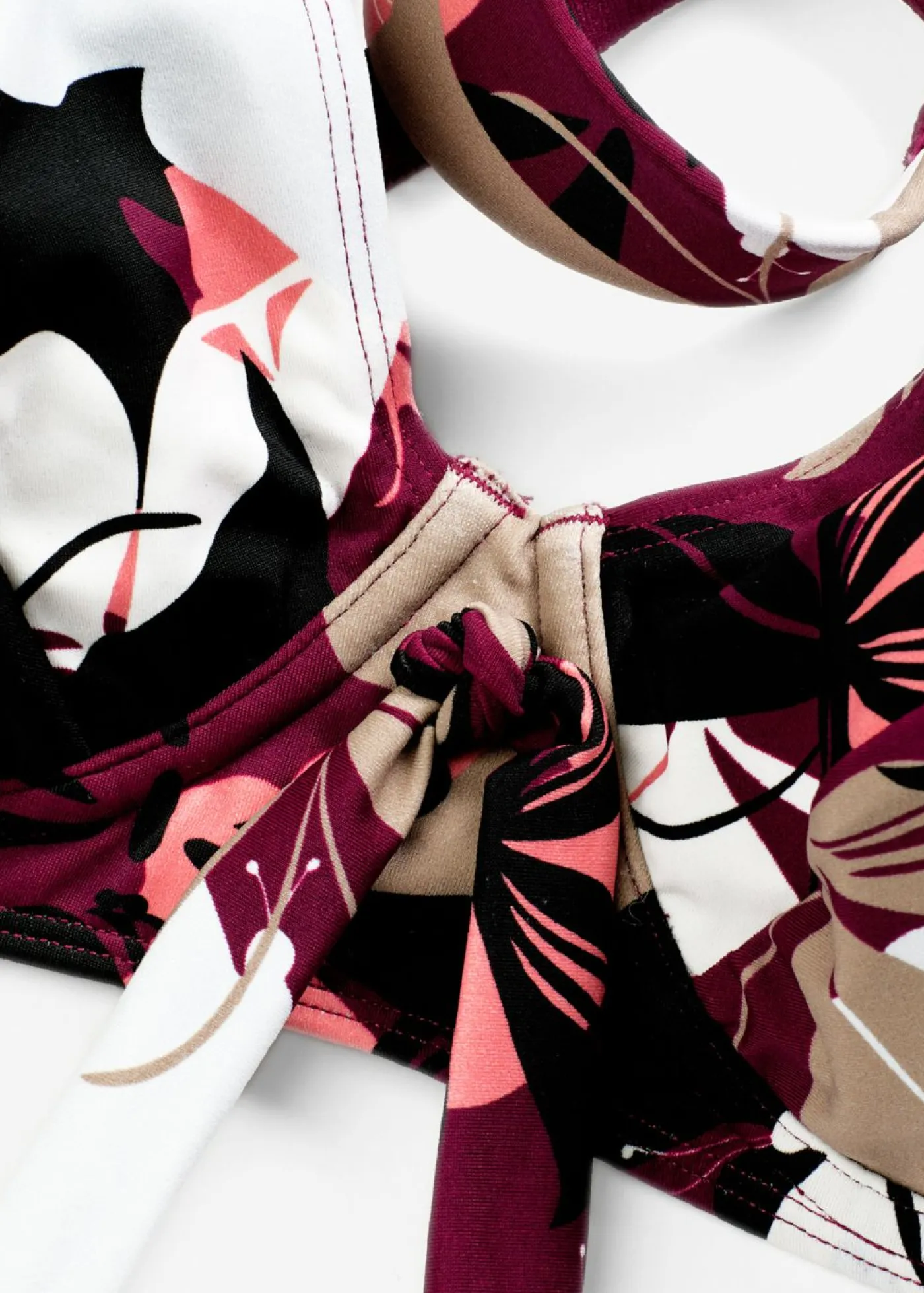 Bikini reductor con estampado llamativo. Reduce visualmente el volumen del seno en una talla de copa. Con tirantes ajustables. Con forro en la parte del pecho. Cierre de clic en la espalda.