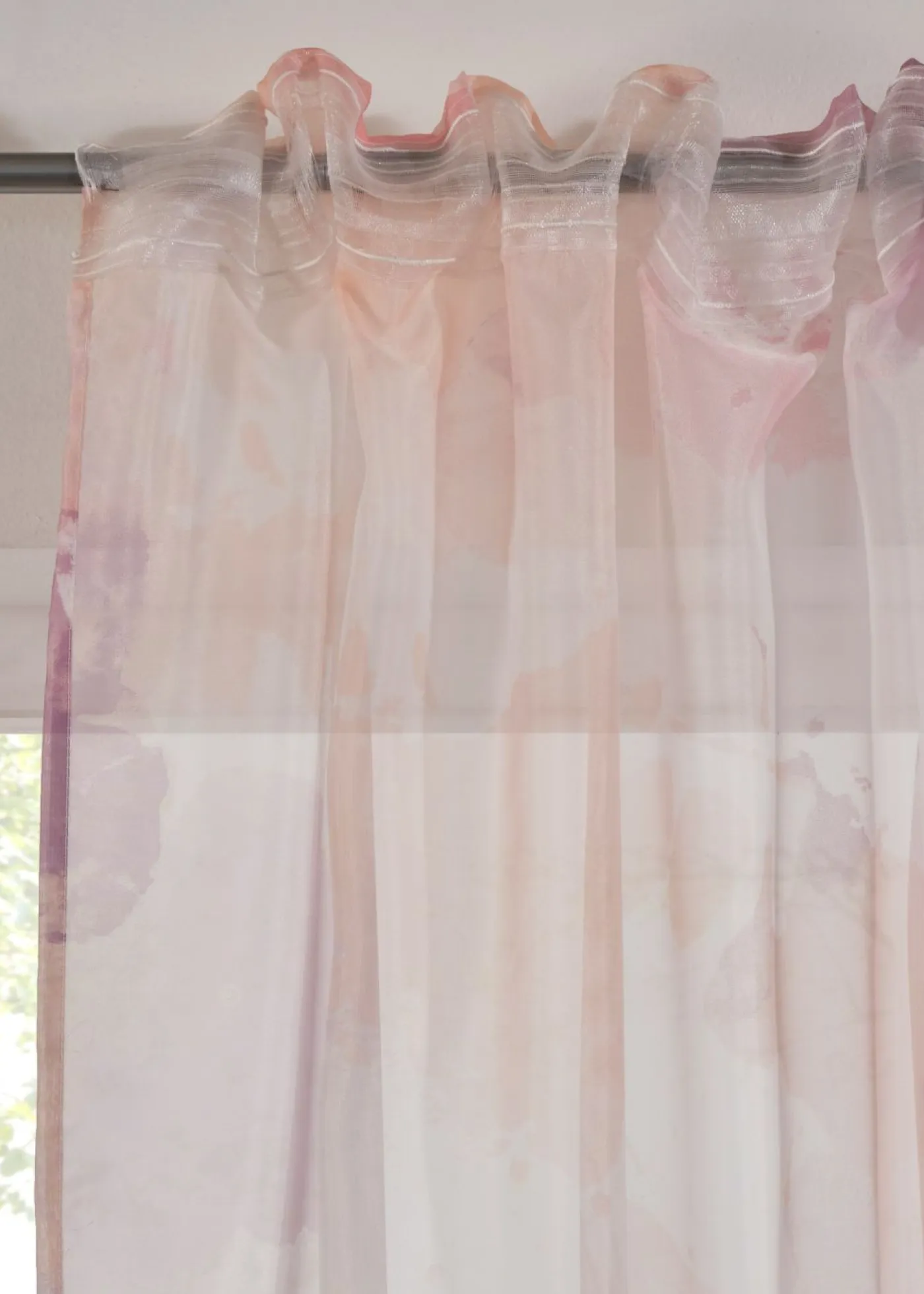 Cortina con estampado moderno. Cortina transparente con un estampado moderno (2 unidades). Tejido de gasa ligero.