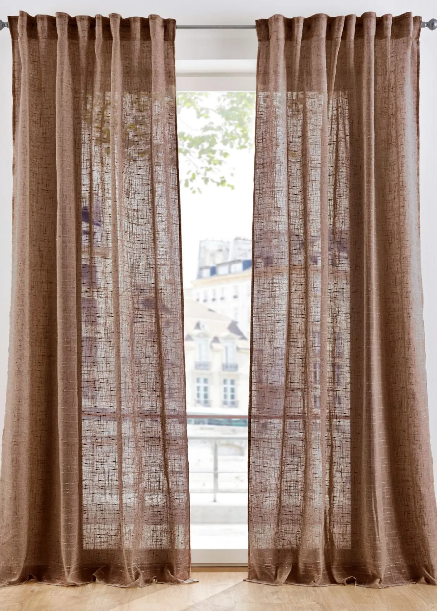 Cortina con aspecto natural. Gran aspecto natural: Nuestra cortina enamora con su aspecto de lino natural. Los espesores de color claro resaltan su gran estructura. La semitransparencia juega con la luz entrante y, al mismo tiempo, mantiene alejadas las miradas indiscretas. Nuestra cortina de fácil cuidado encaja perfectamente con diferentes conceptos de decoración.